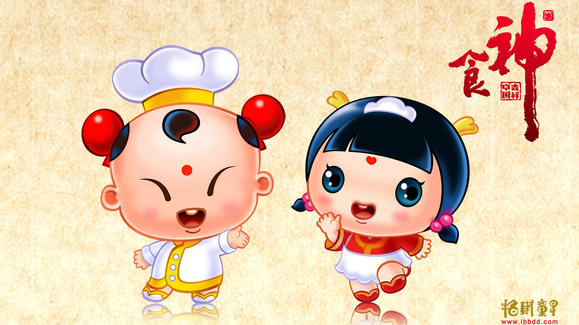 炫酷 设计 手绘 中国风 招财童子 食神 2月28日 儿童桌面专用