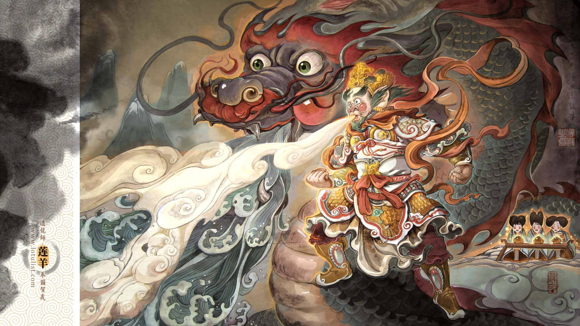 炫酷 手绘 中国风 莲羊 2月1日 儿童桌面专用