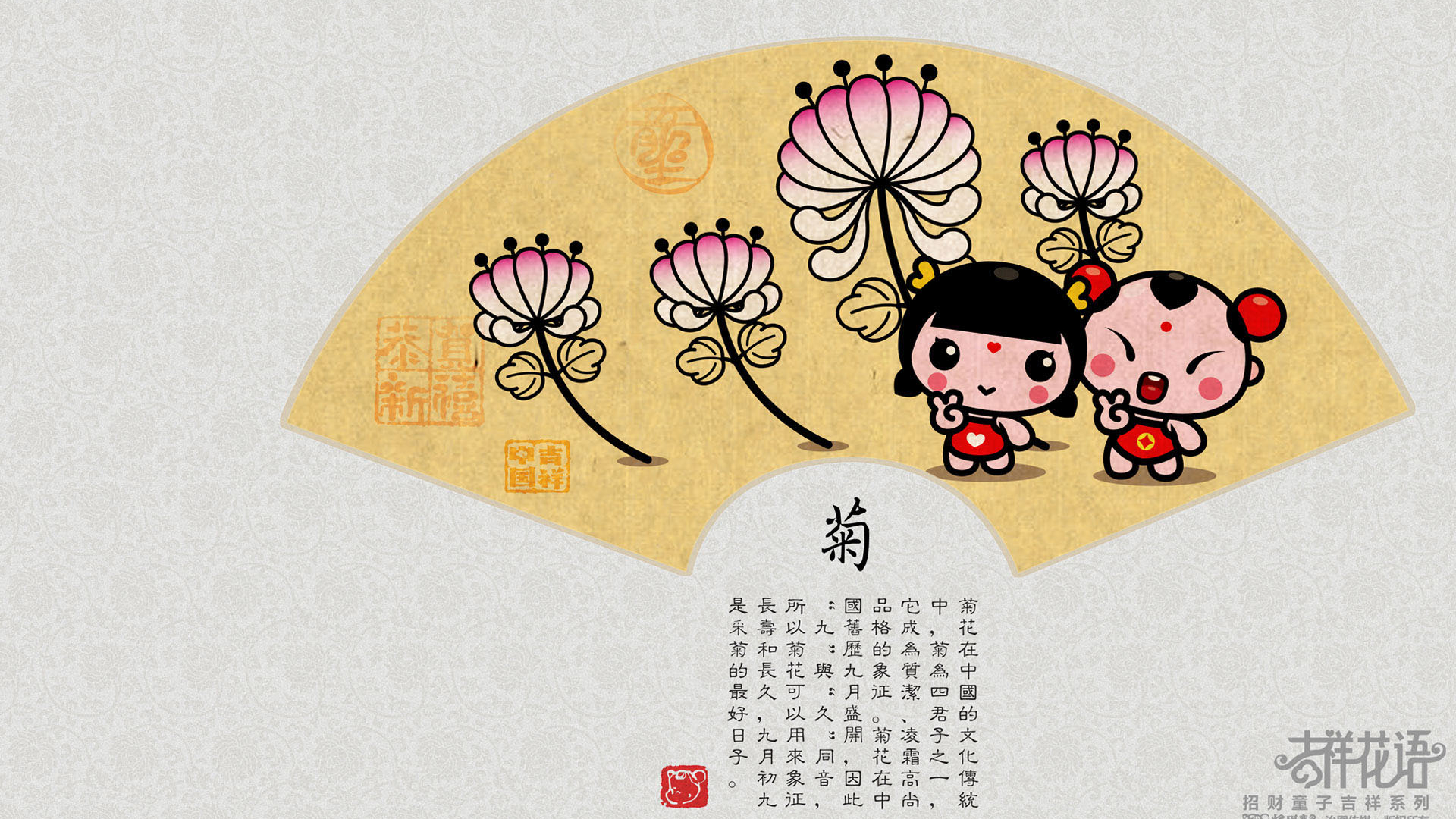炫酷 手绘 招财童子 中国风 十二月二十一日 儿童桌面专用