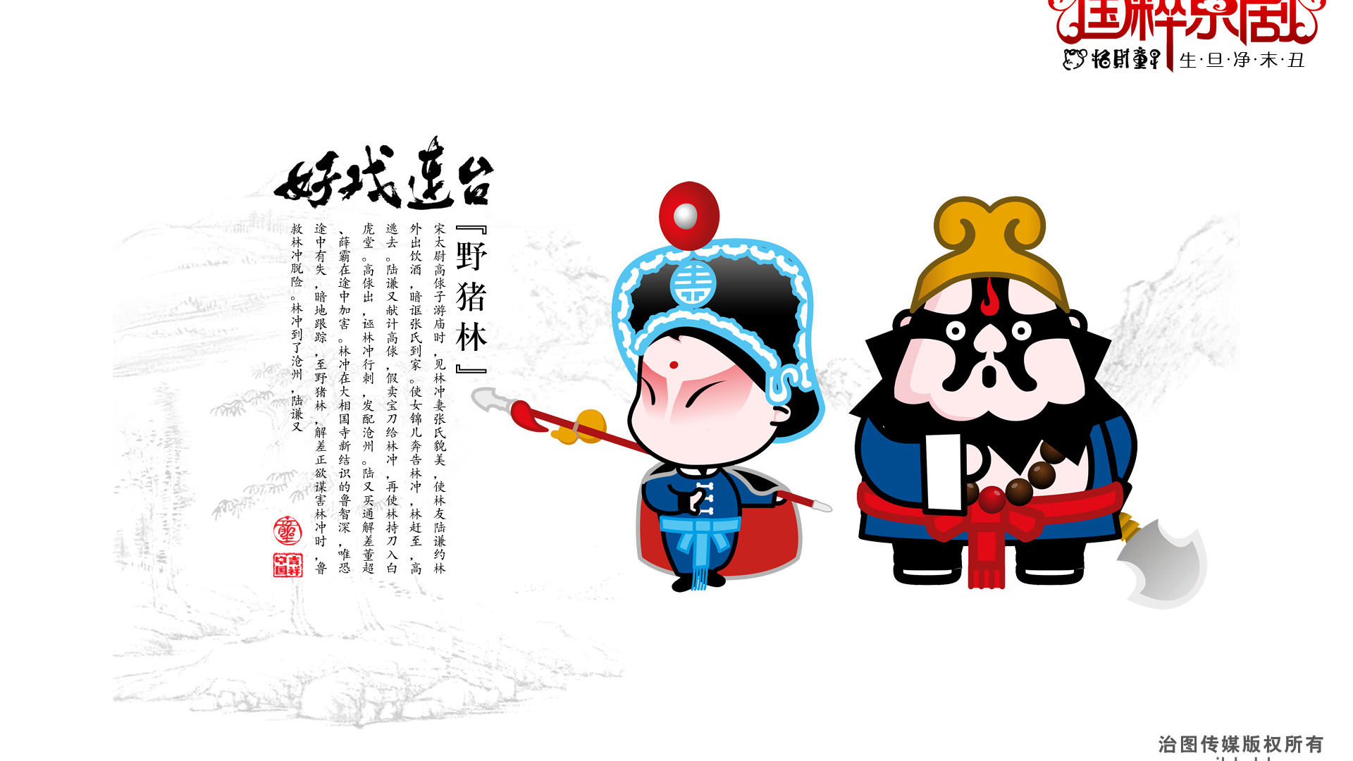 炫酷 设计 手绘 中国风 京剧 招财童子 十二月六日 儿童桌面专用