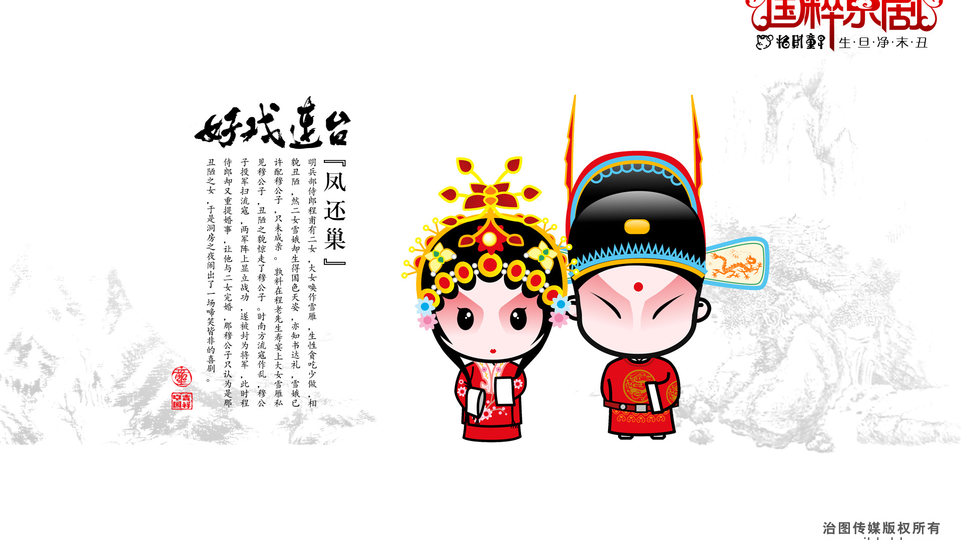 炫酷 设计 手绘 中国风 京剧 招财童子 十二月六日 儿童桌面专用