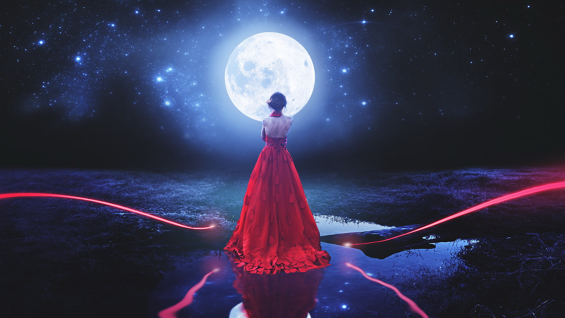 月亮 美女 长裙 意境