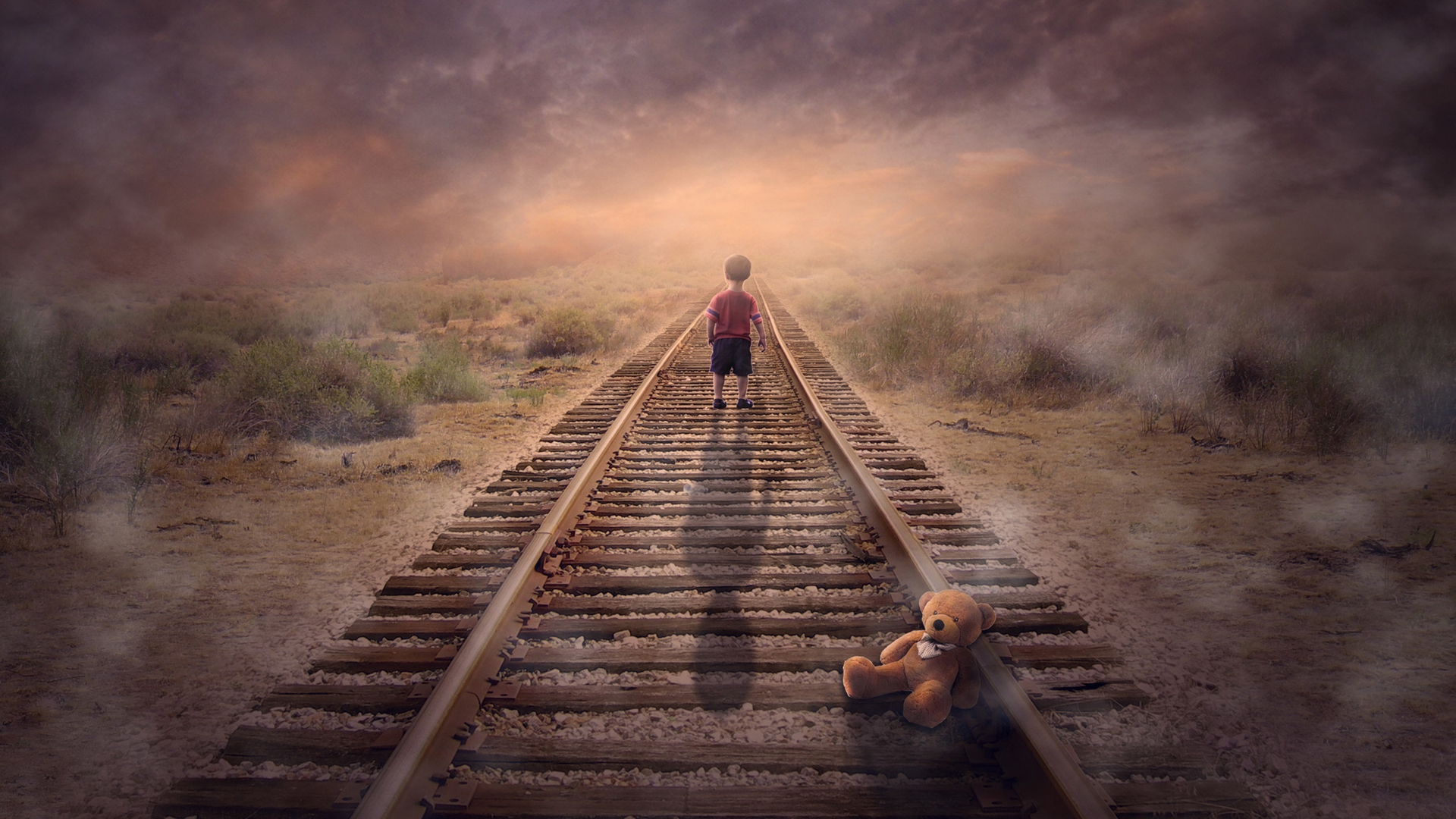 铁路 熊布偶 小孩