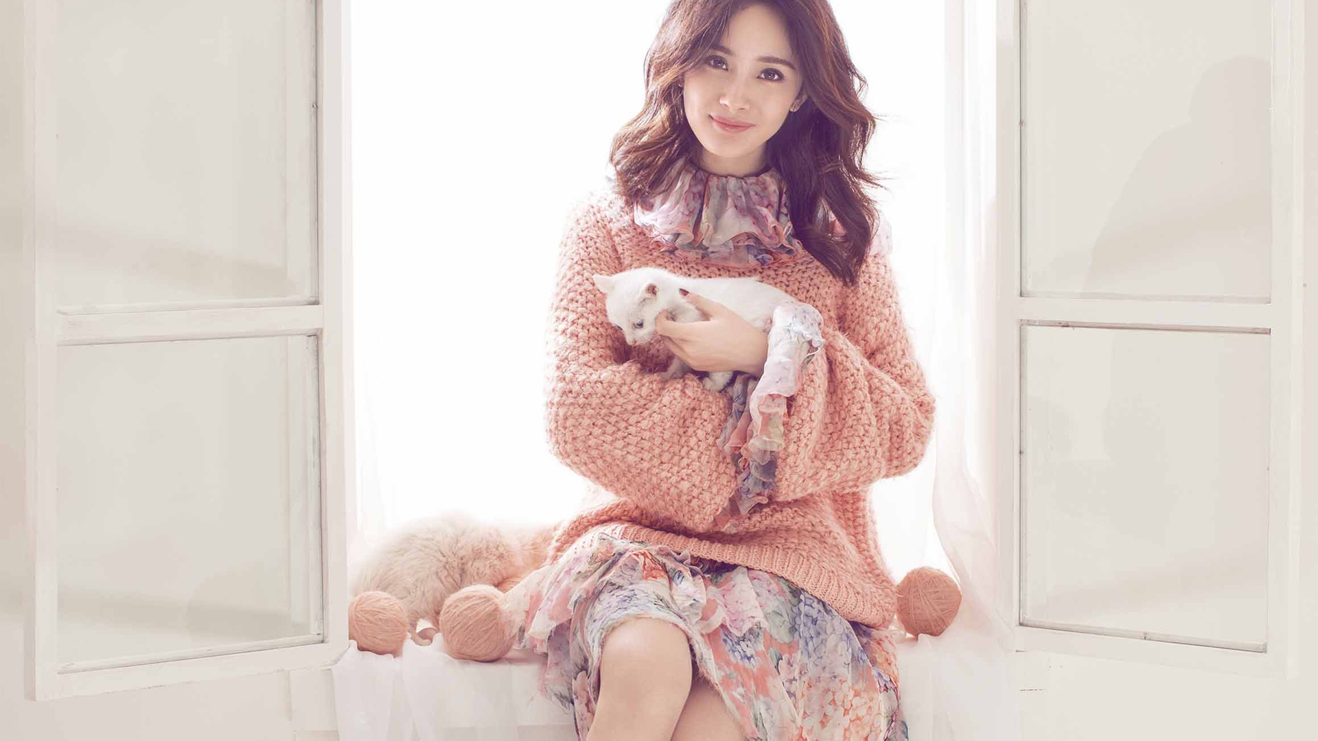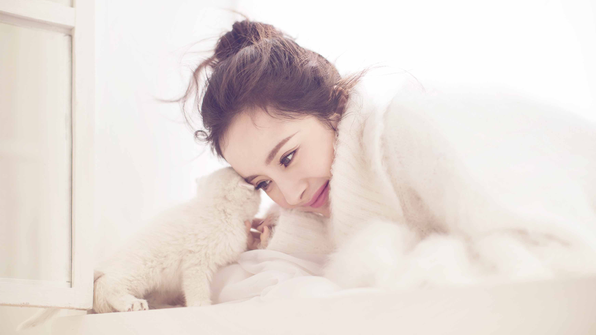 杨幂 写真 冬日 猫咪