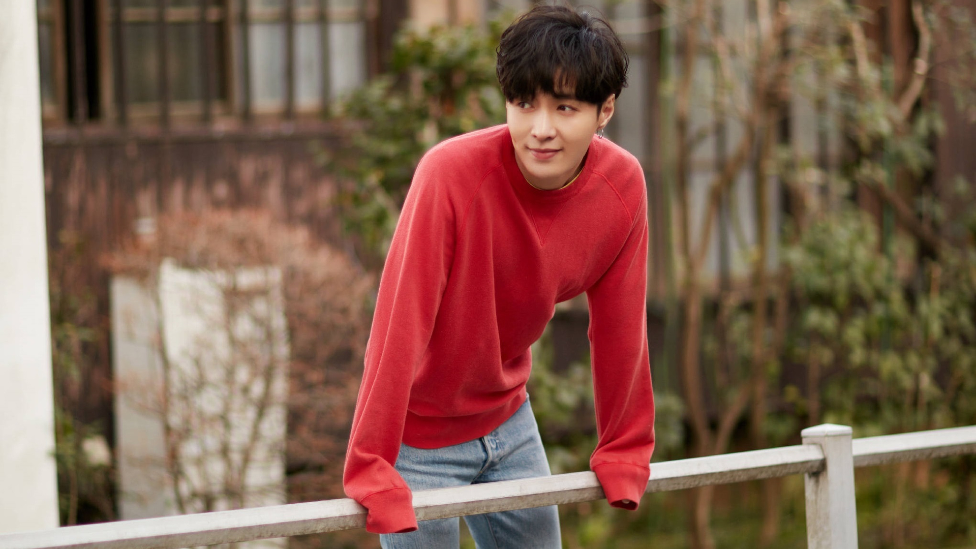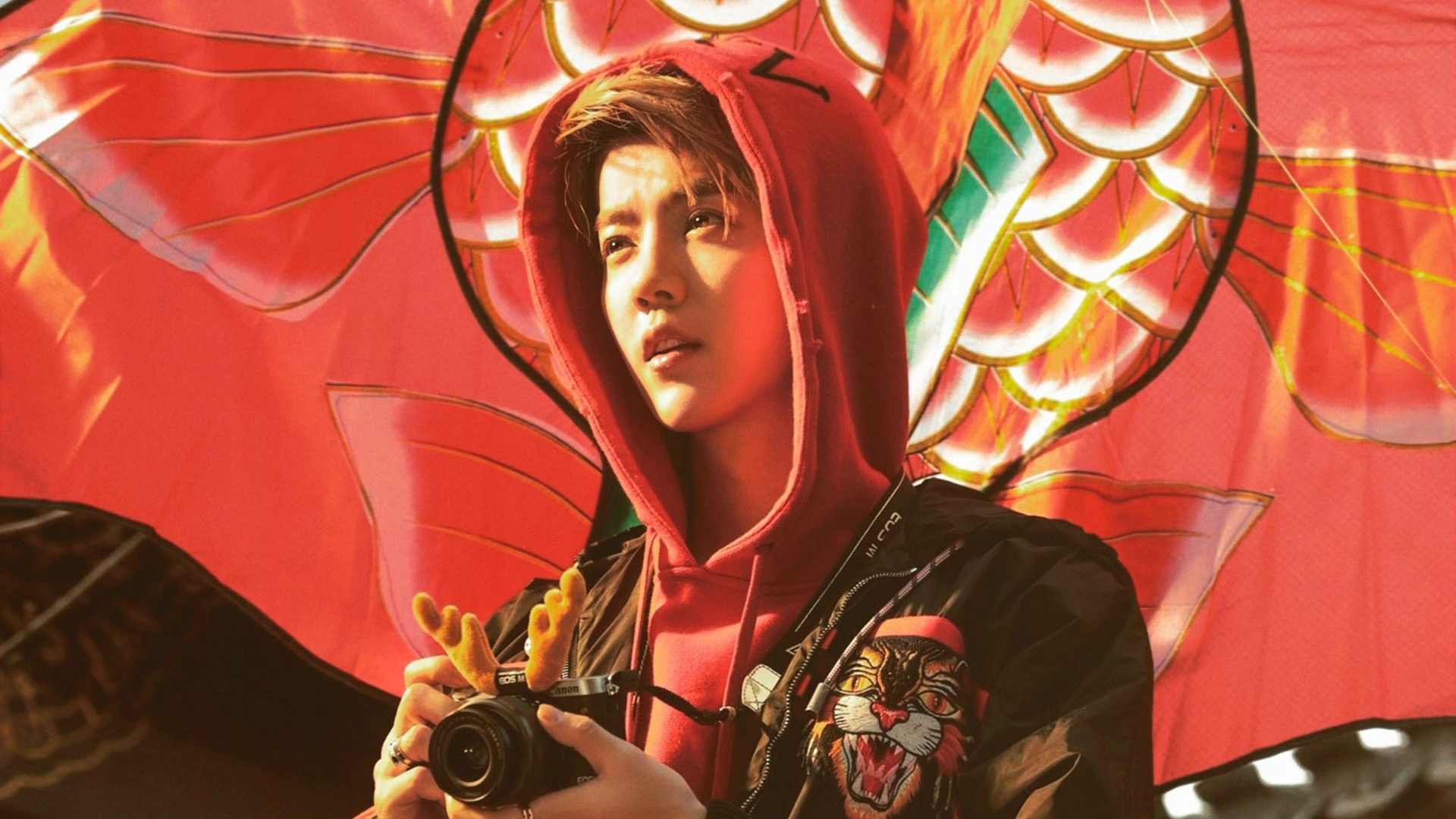 张艺兴 街拍 红色毛衣