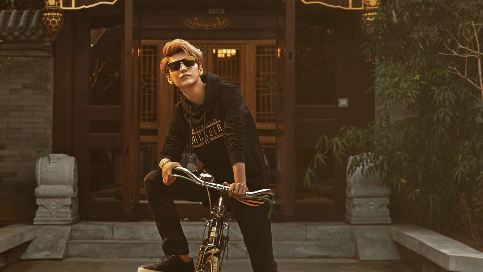 鹿晗 街拍 自行车