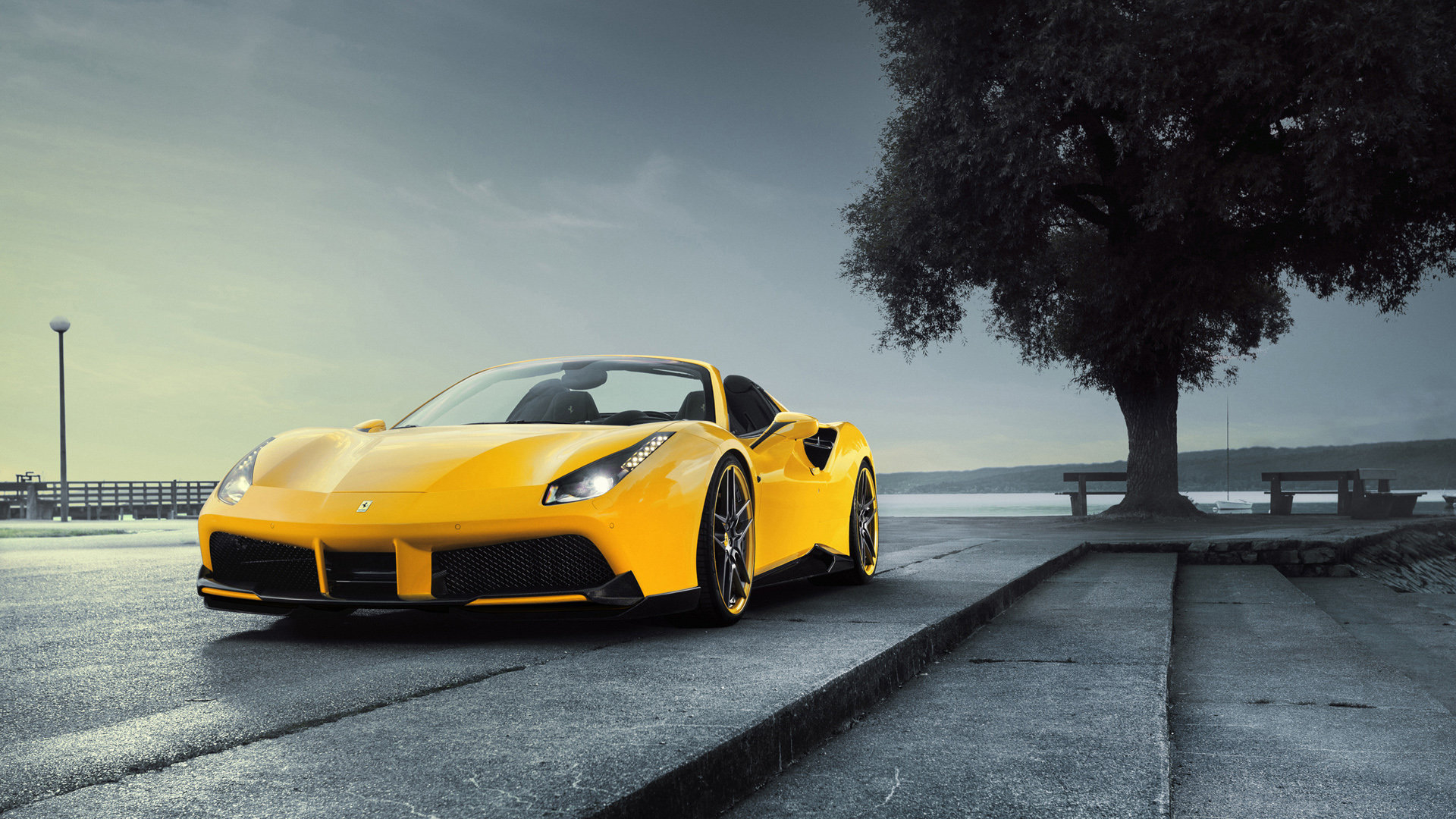 跑车 黄色 车尾