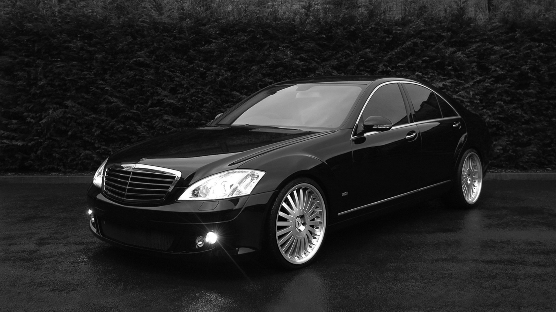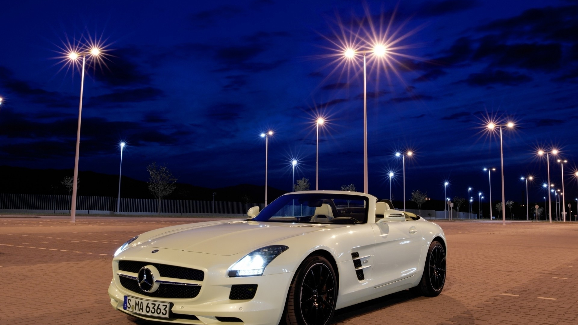 奔驰 白色跑车 灯光