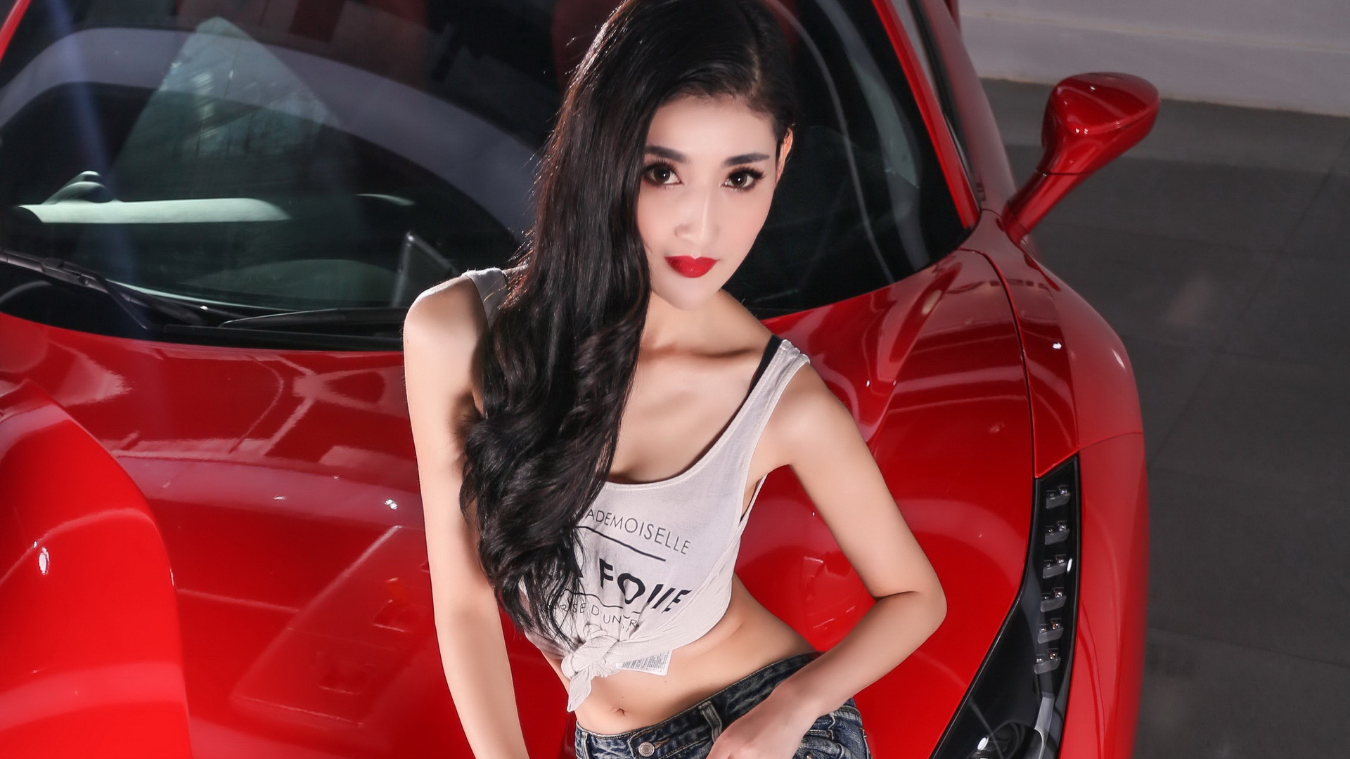 法拉利 改装车 美女 模特 宽屏