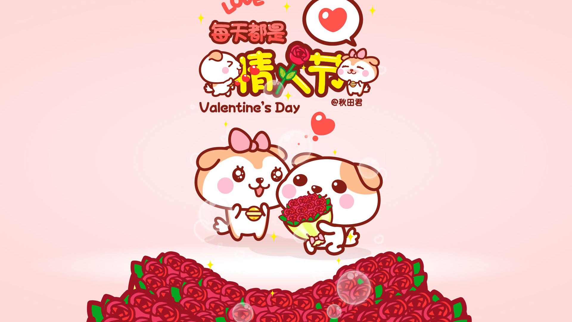 妇女节 女生节 小狗 可爱 玫瑰花