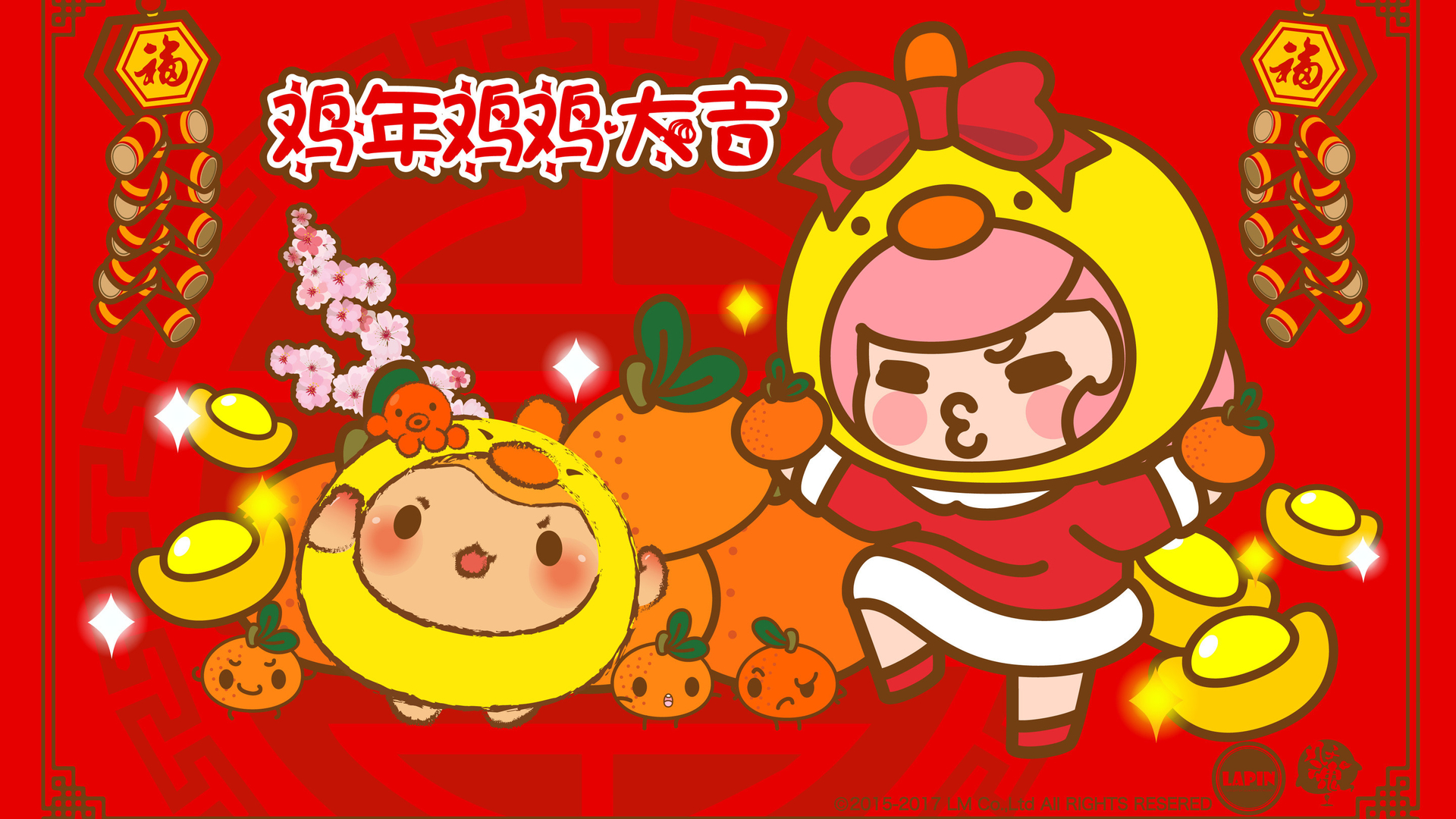 Lapin&丸子魂 新春快乐 鸡年大吉 小鸡 小猫 樱花