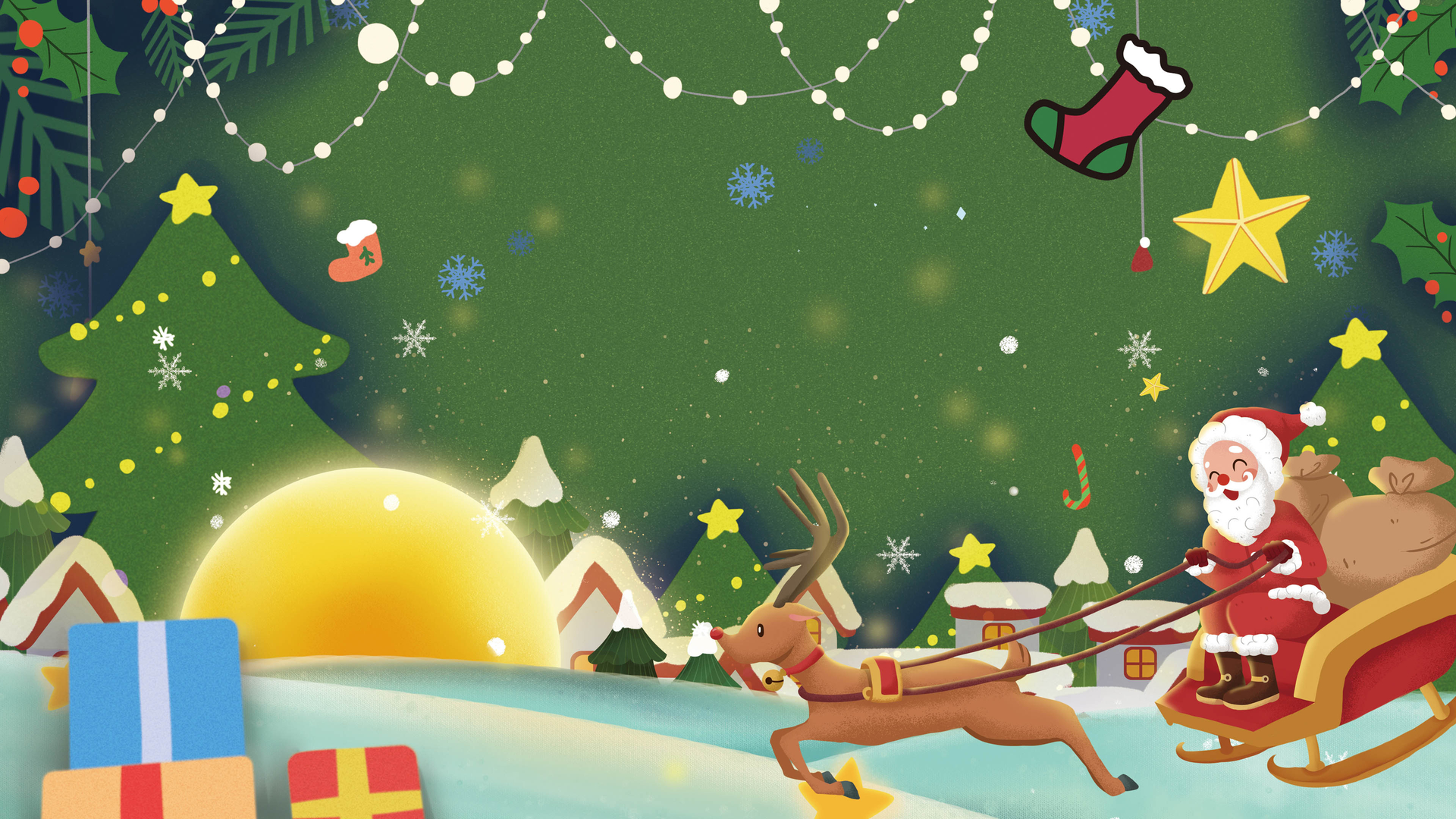 圣诞节 圣诞老人 麋鹿 雪花 礼物