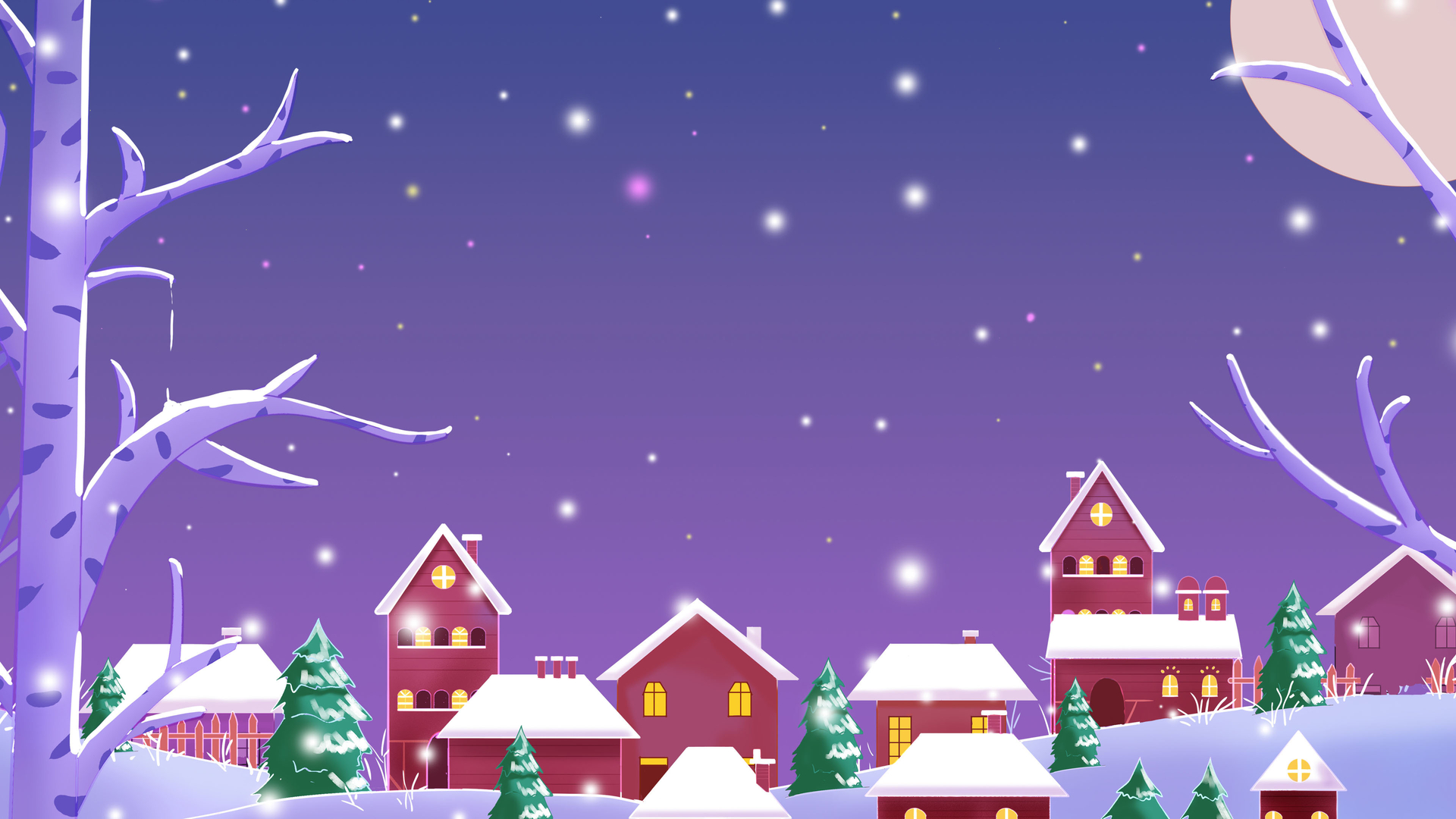 圣诞节 圣诞树 雪地 森林 圆月