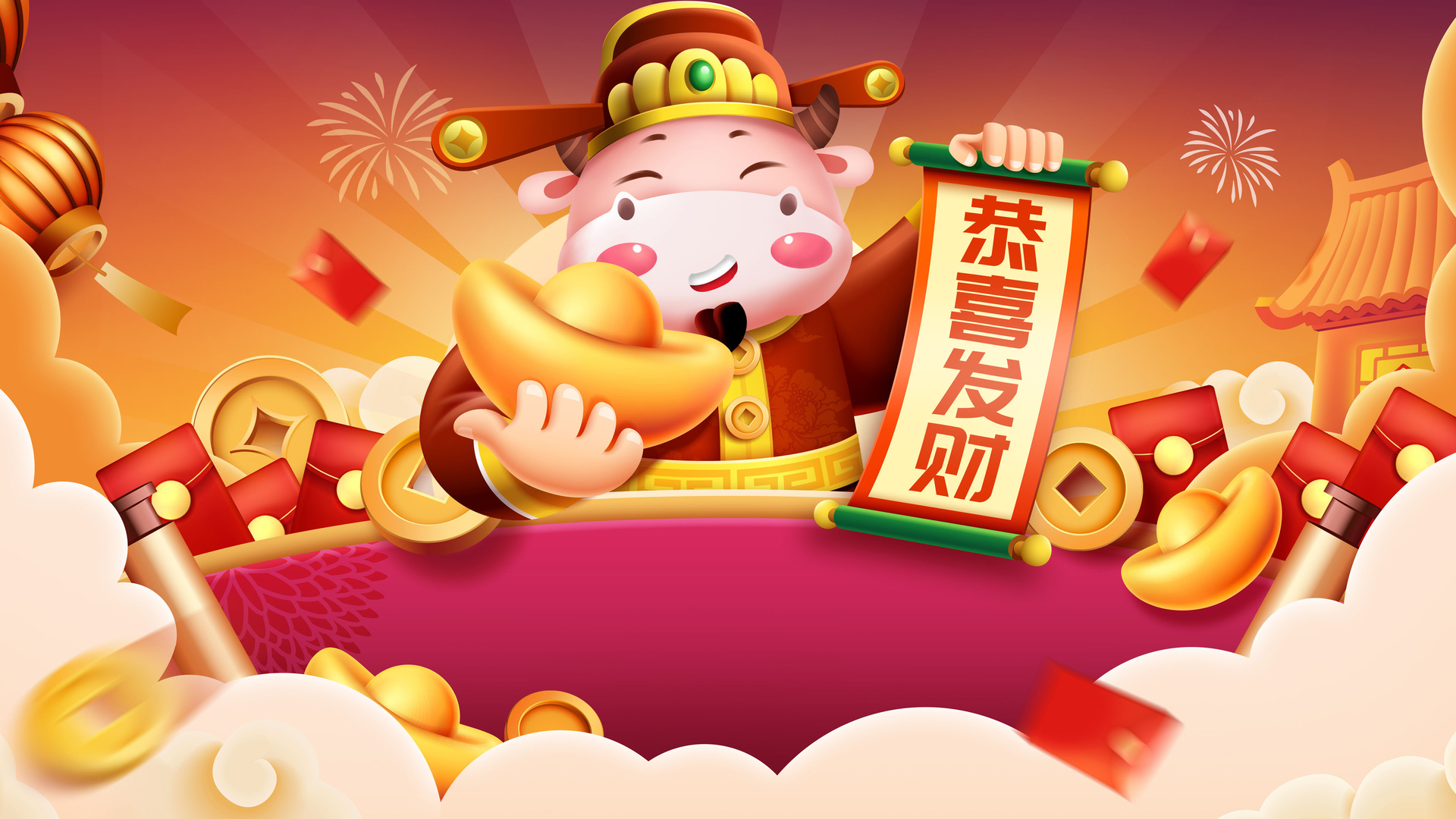 牛年 新年 财神 恭喜发财