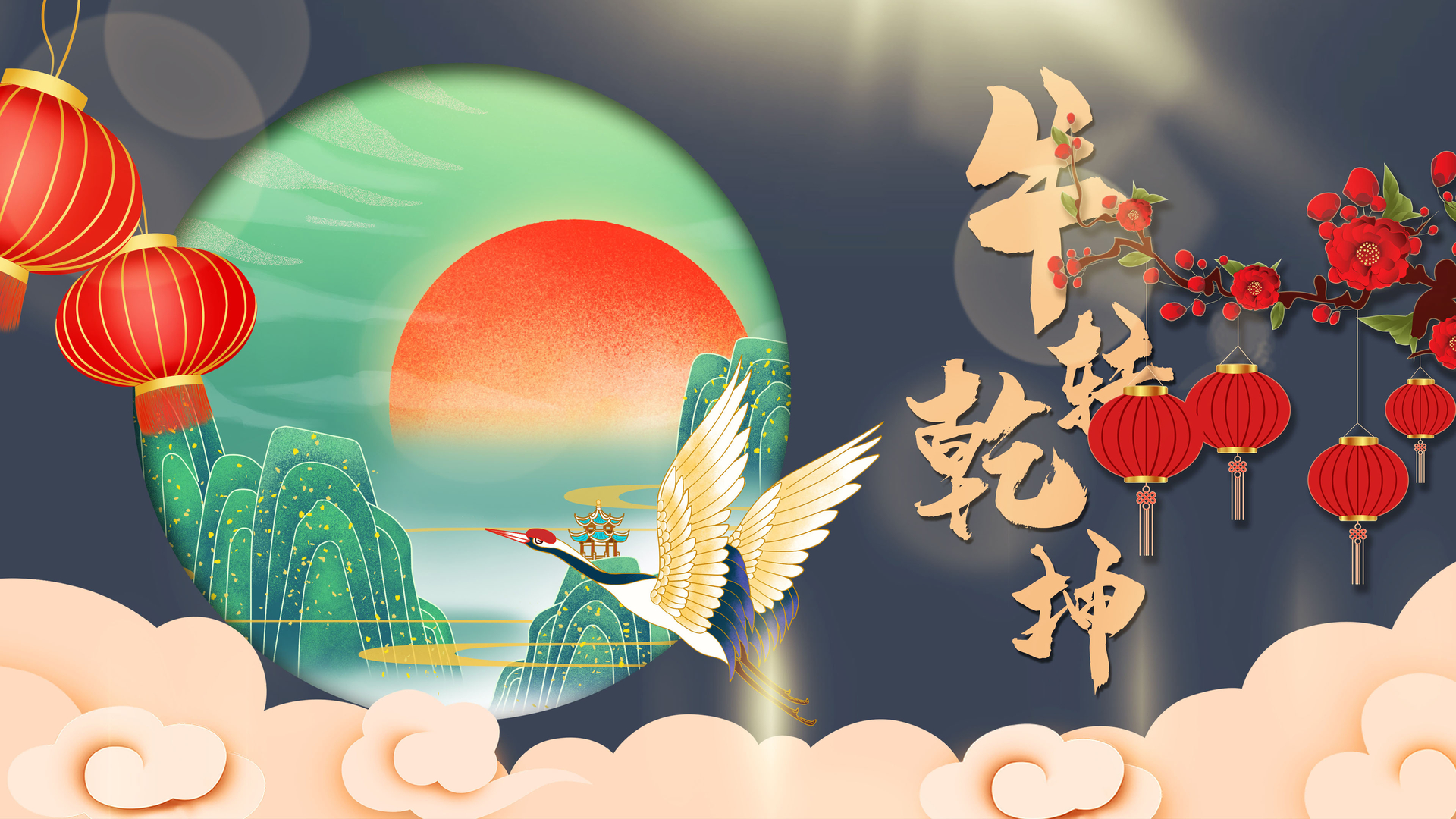 牛年 春节 仙鹤 灯笼 祥云