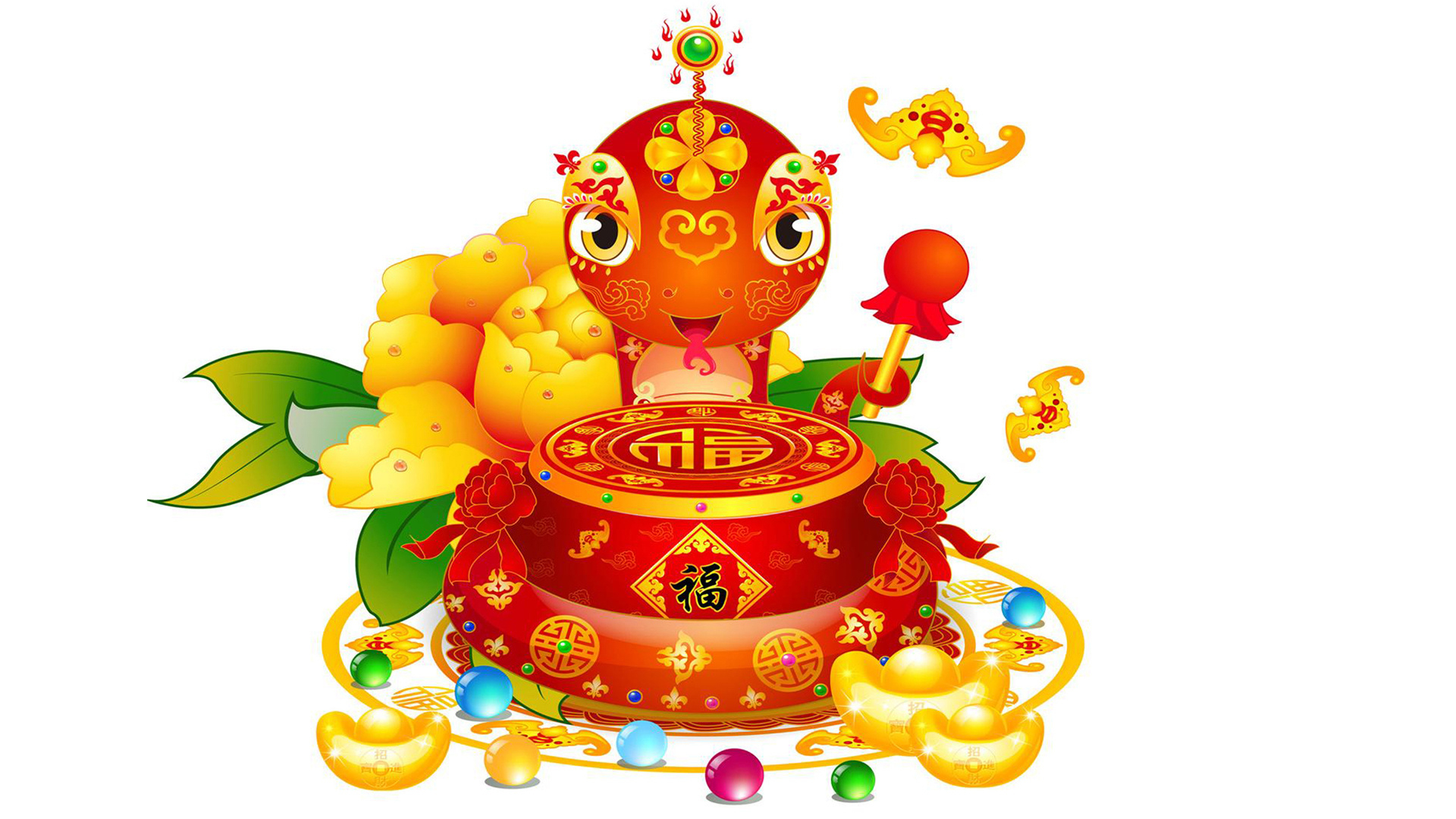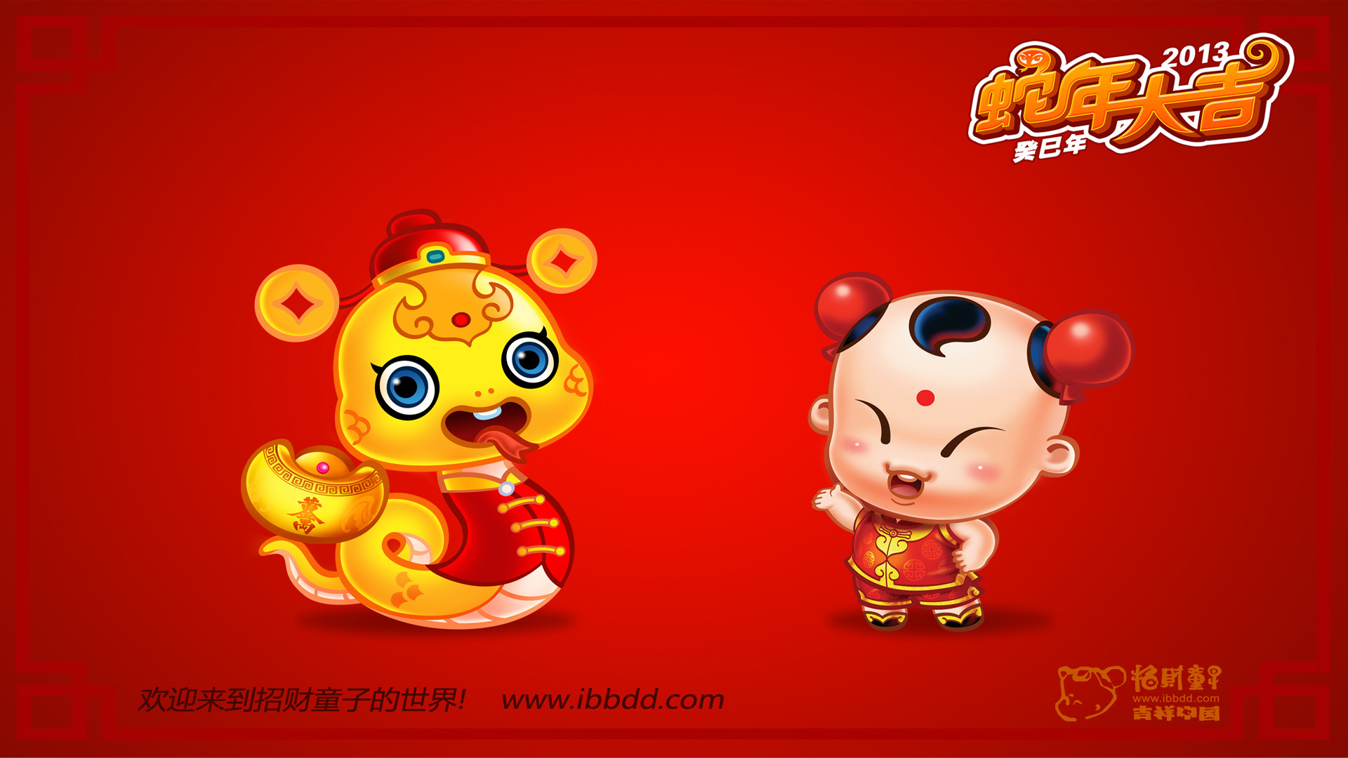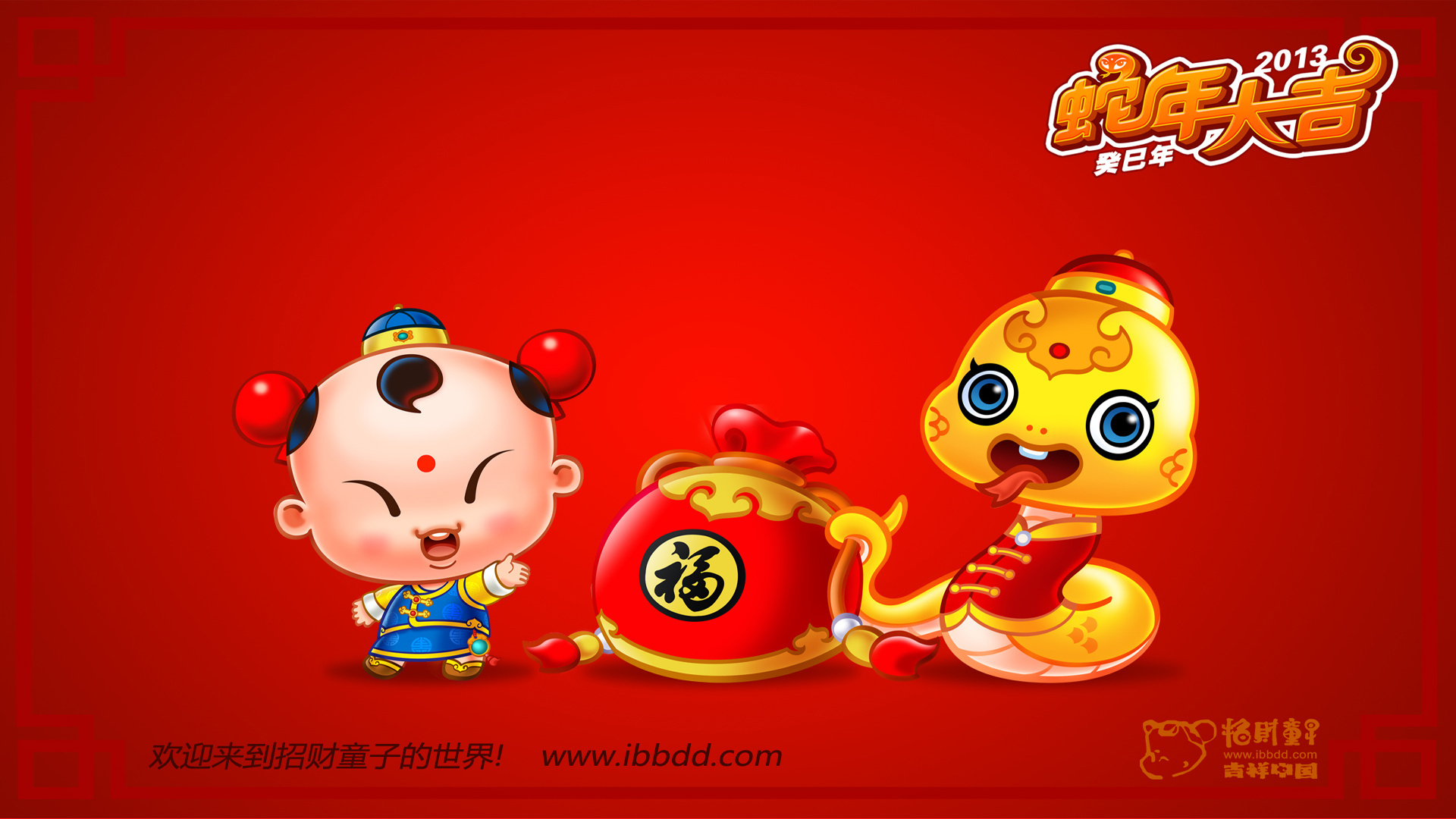 节日 过年 新年 春节 喜庆 蛇年 招财童子 儿童桌面专用