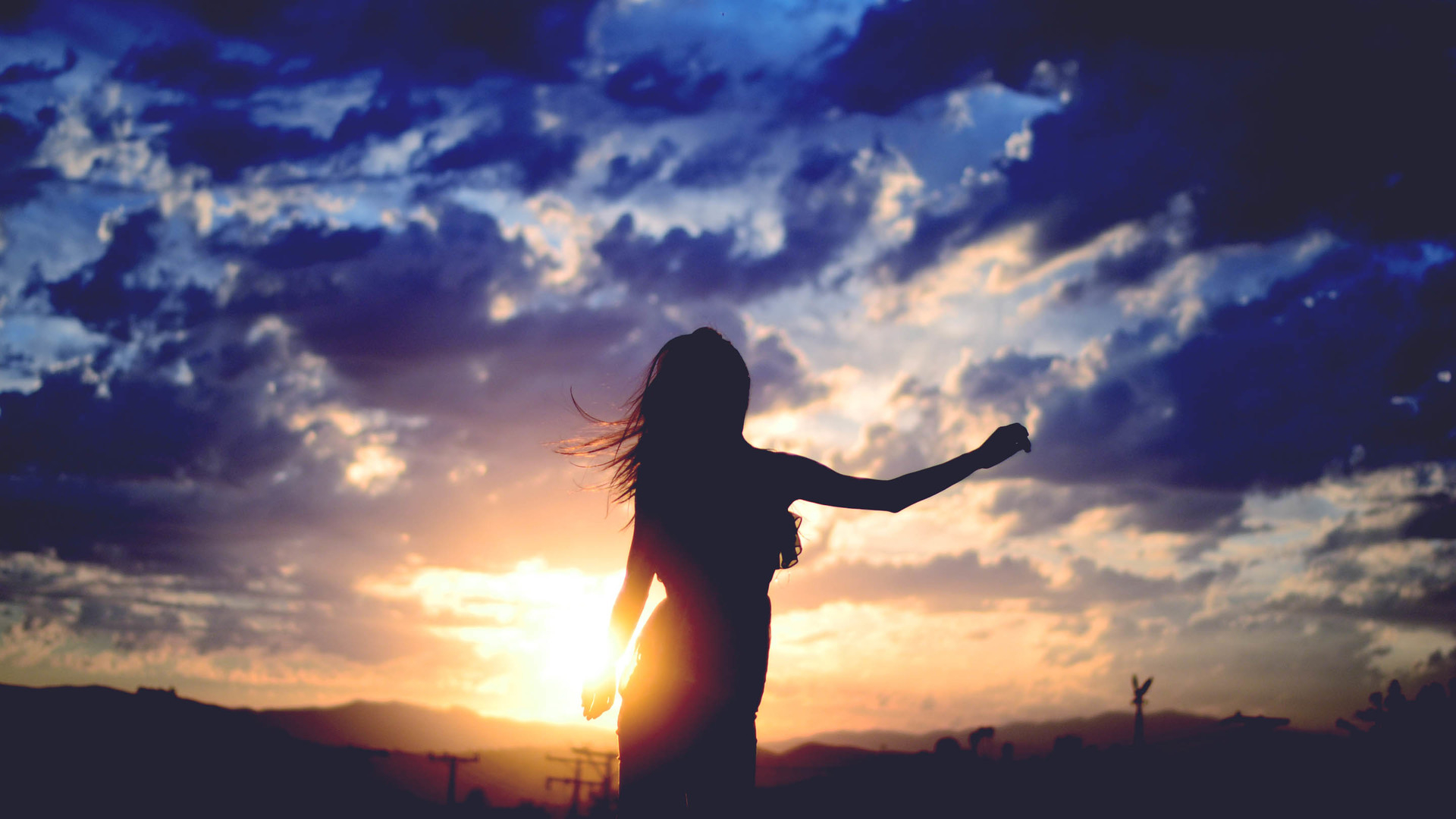 小清新 唯美 青春 美女 影子 夕阳 背影