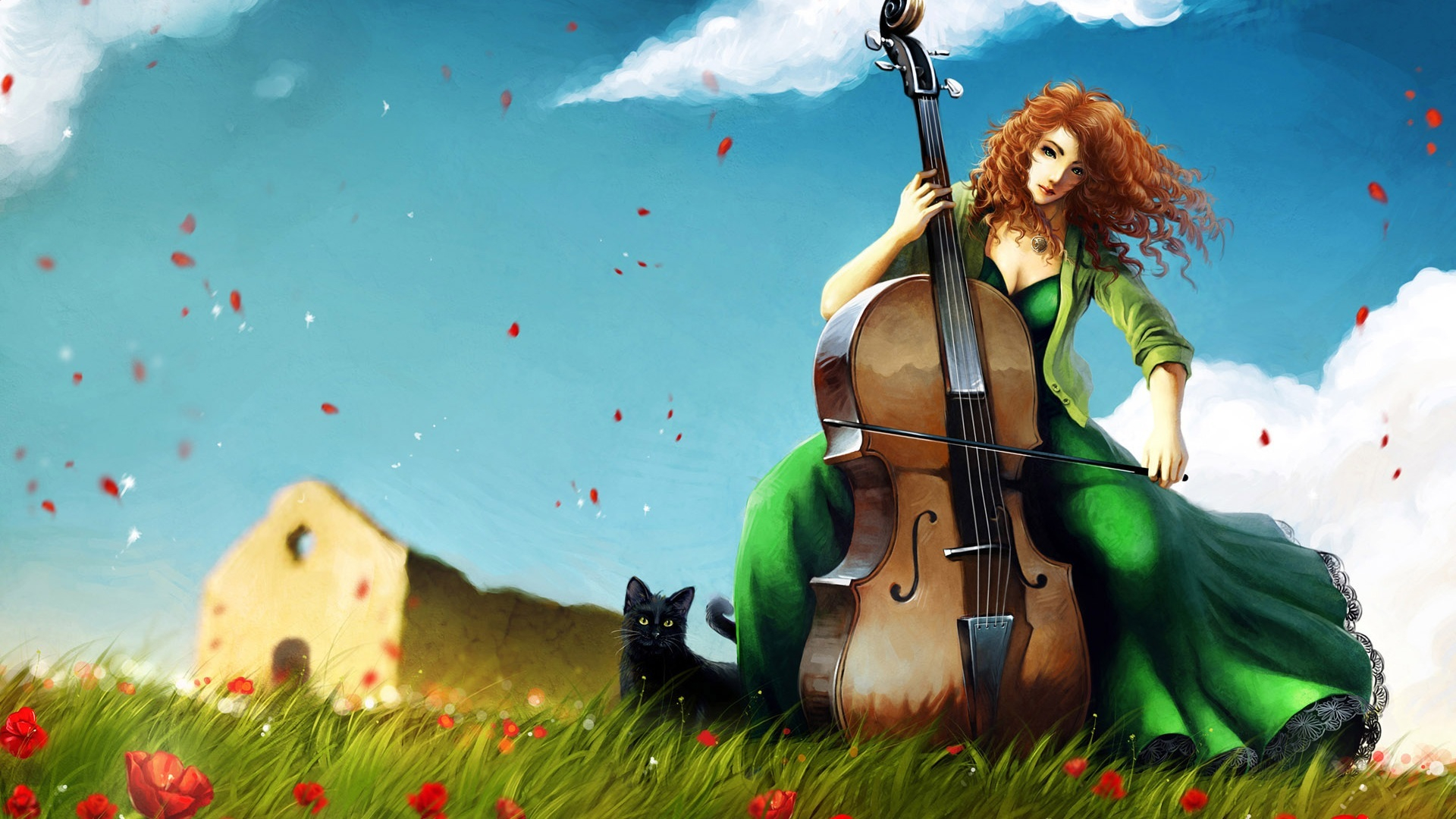 小清新 温馨一刻 女孩 大提琴 草地 2月22日 儿童桌面专用