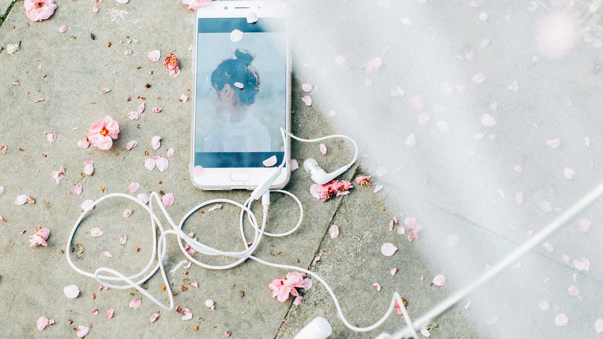 小清新 手机 耳机 静物写真 樱花