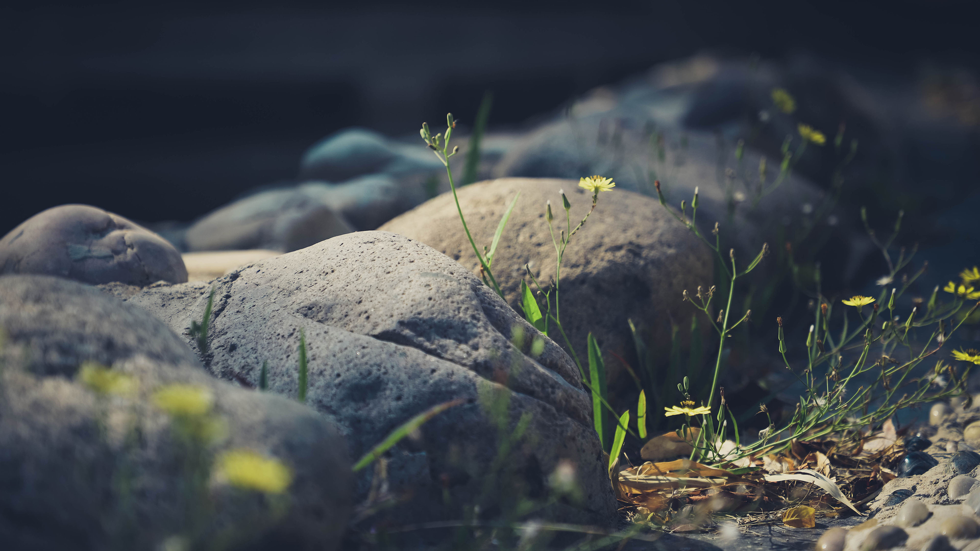 清新淡雅 野花 石头 草地