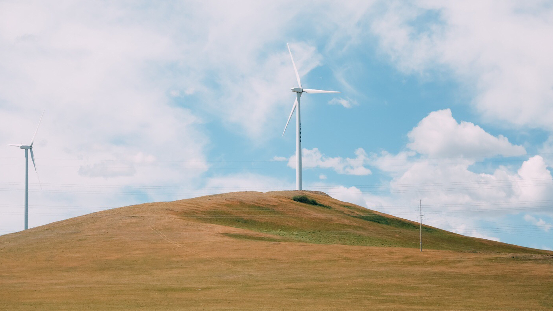 小清新 草原 风电机 蓝天白云 日系