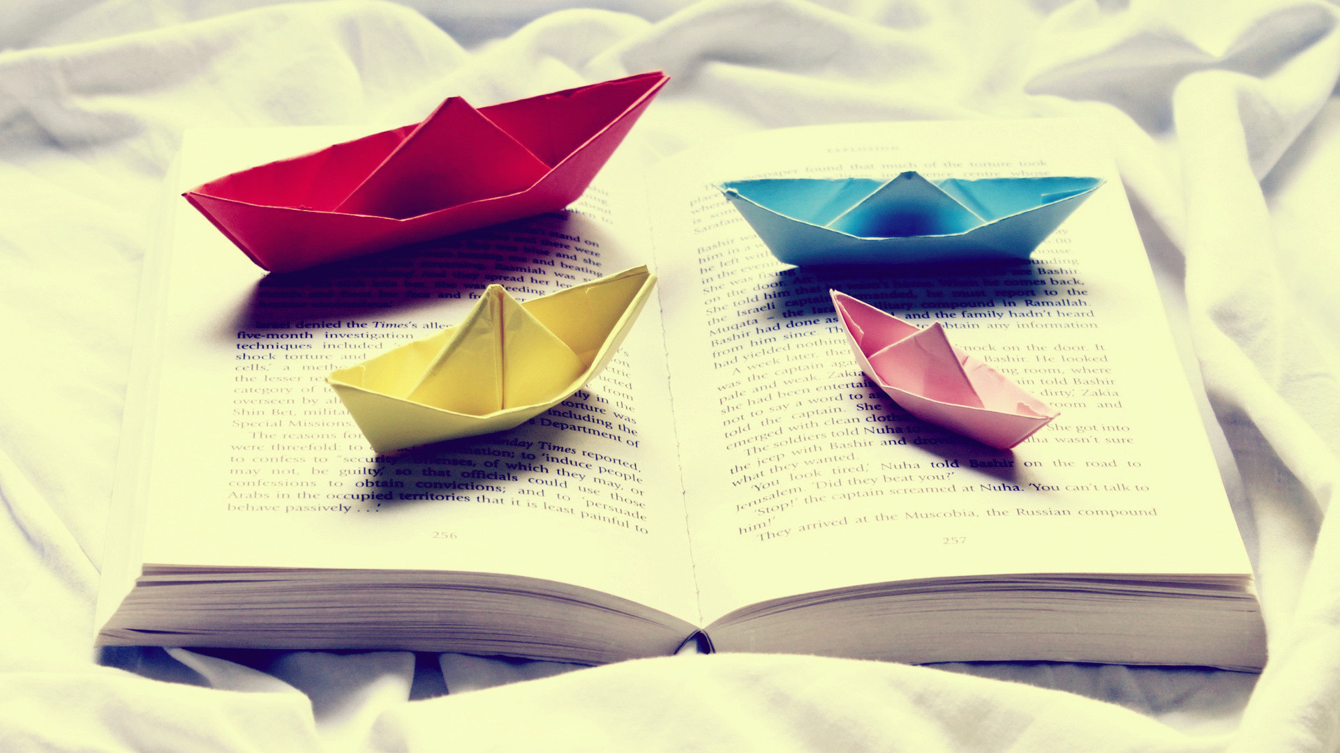 小清新 彩色纸船 书本 和谐温馨 宽屏