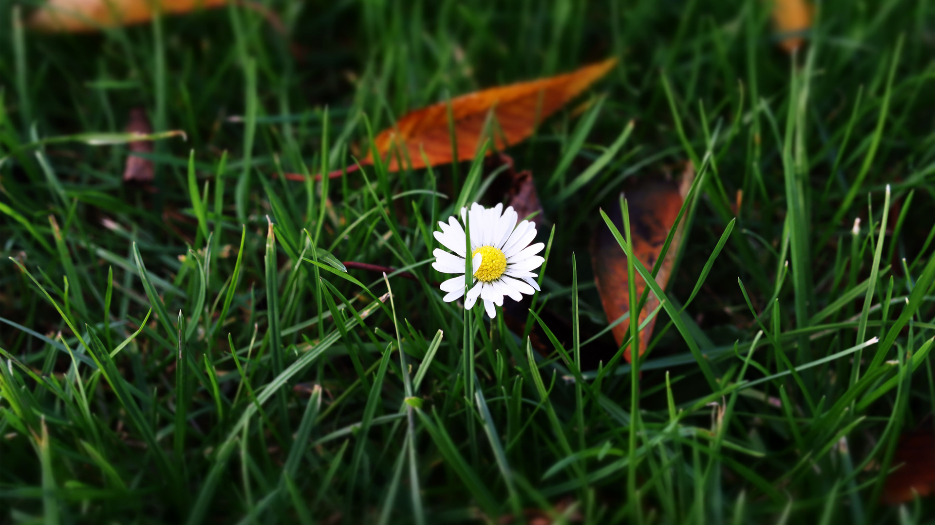 娇艳欲滴 小野花 雏菊 草地 落叶