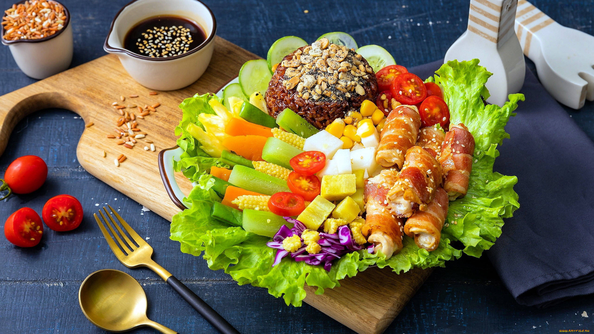 舒缓压力 叉子 番茄 生菜 汤匙