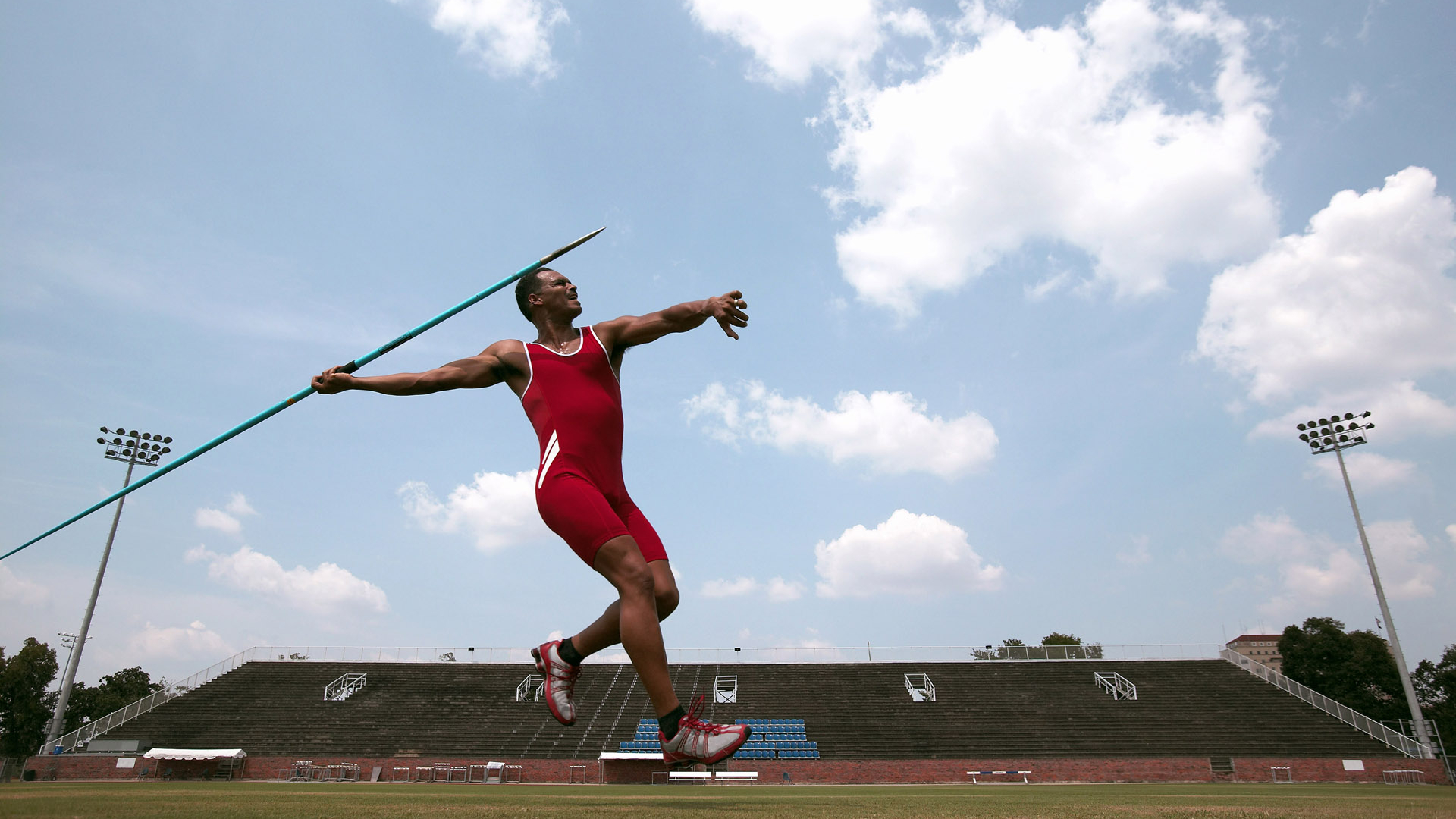 伦敦奥运 2012 英国 六月二十九日 田径赛场 标枪 蓝天 白云