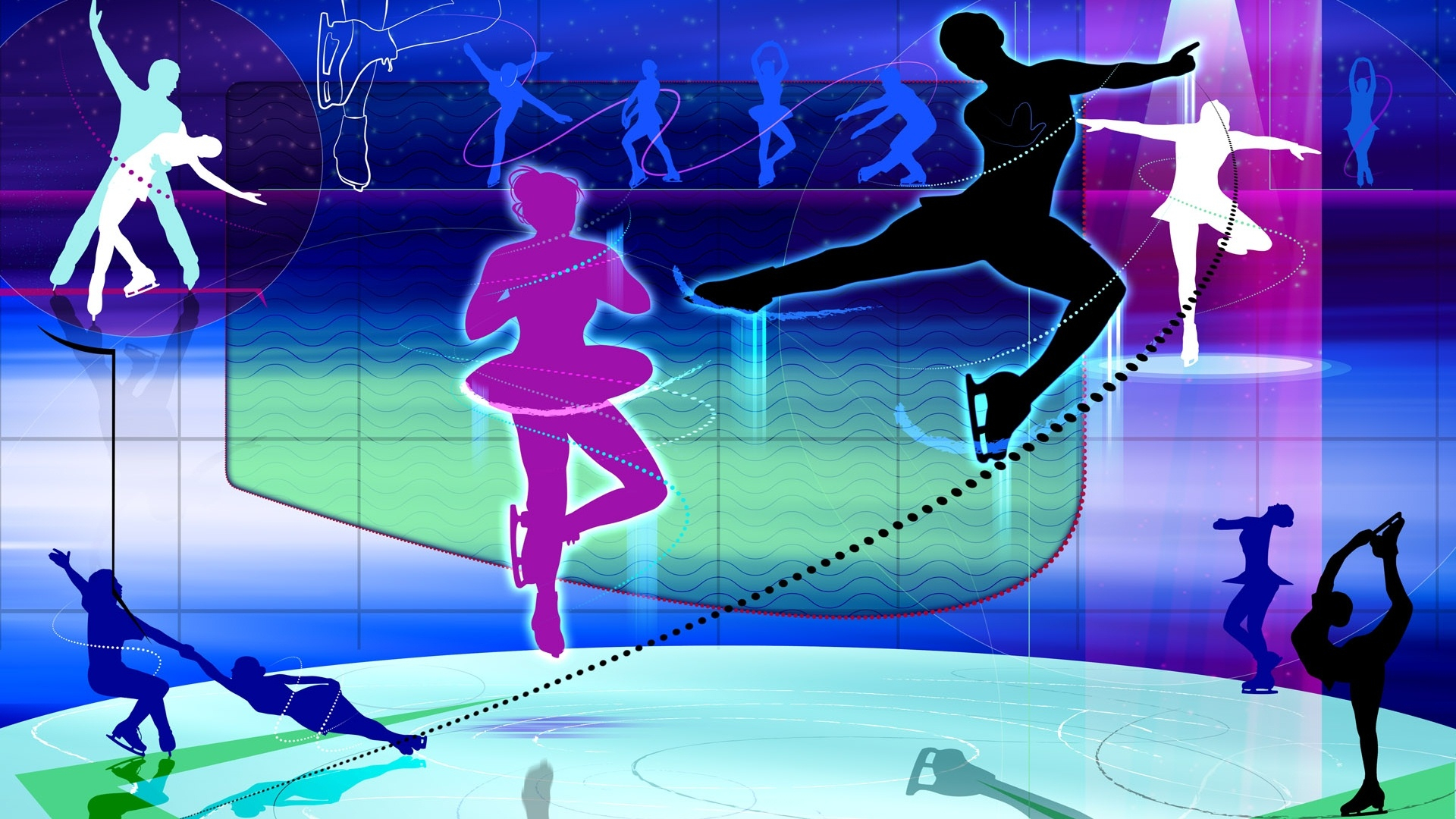 体育 奥运项目 冰上芭蕾 卡通版 手绘