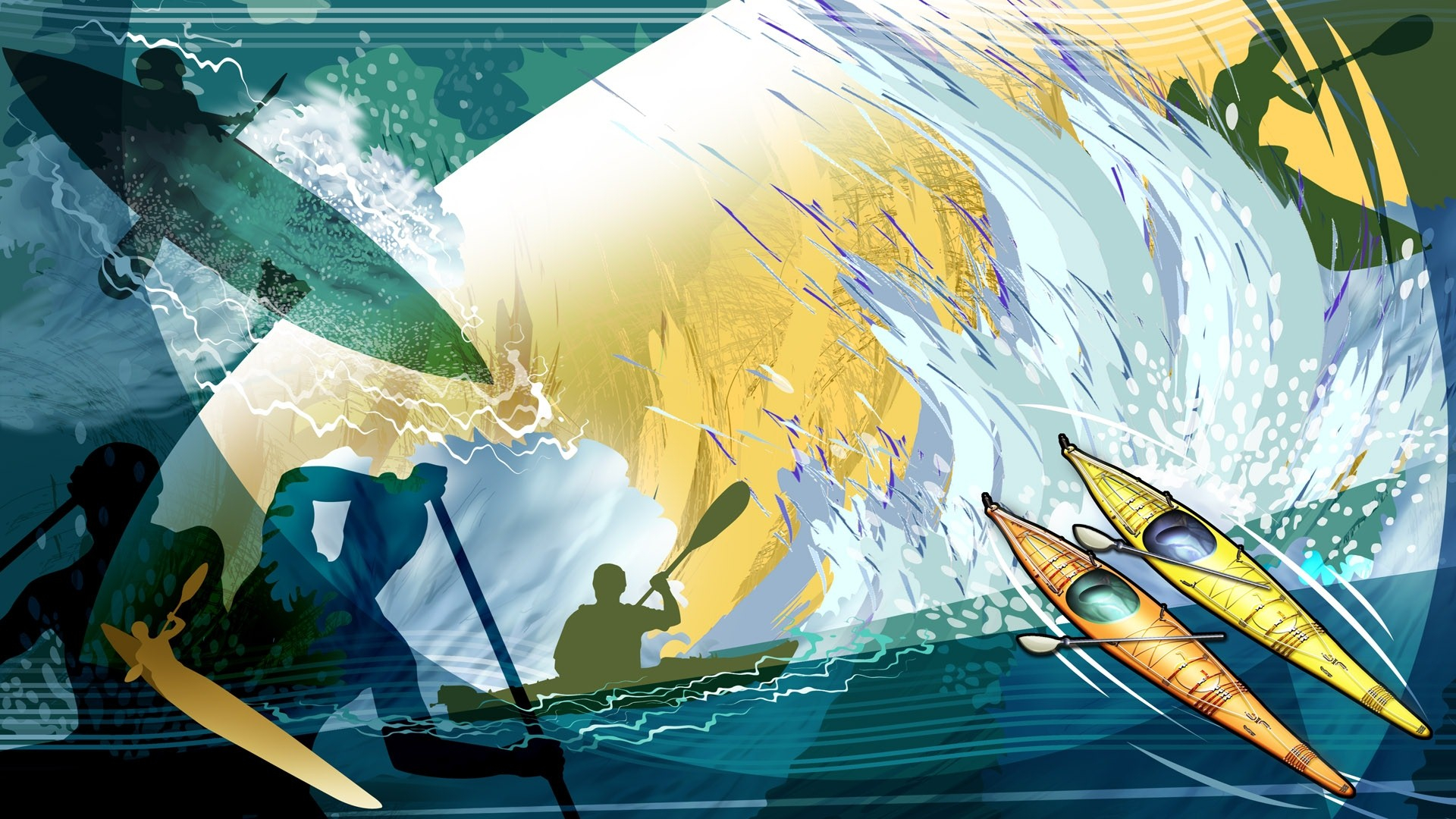 体育 奥运项目 手绘 皮划艇