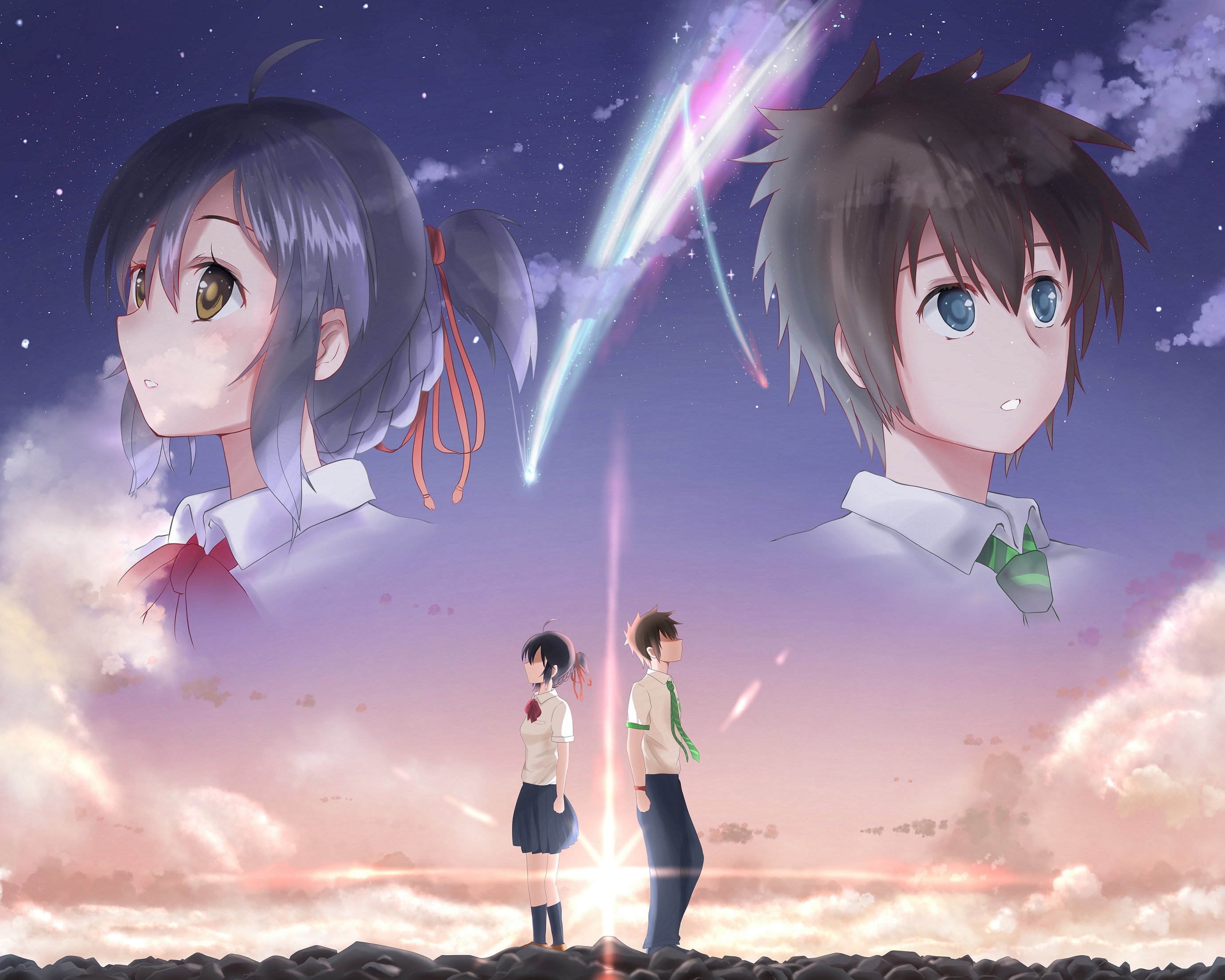 黄昏 草地 可爱 二次元 放学