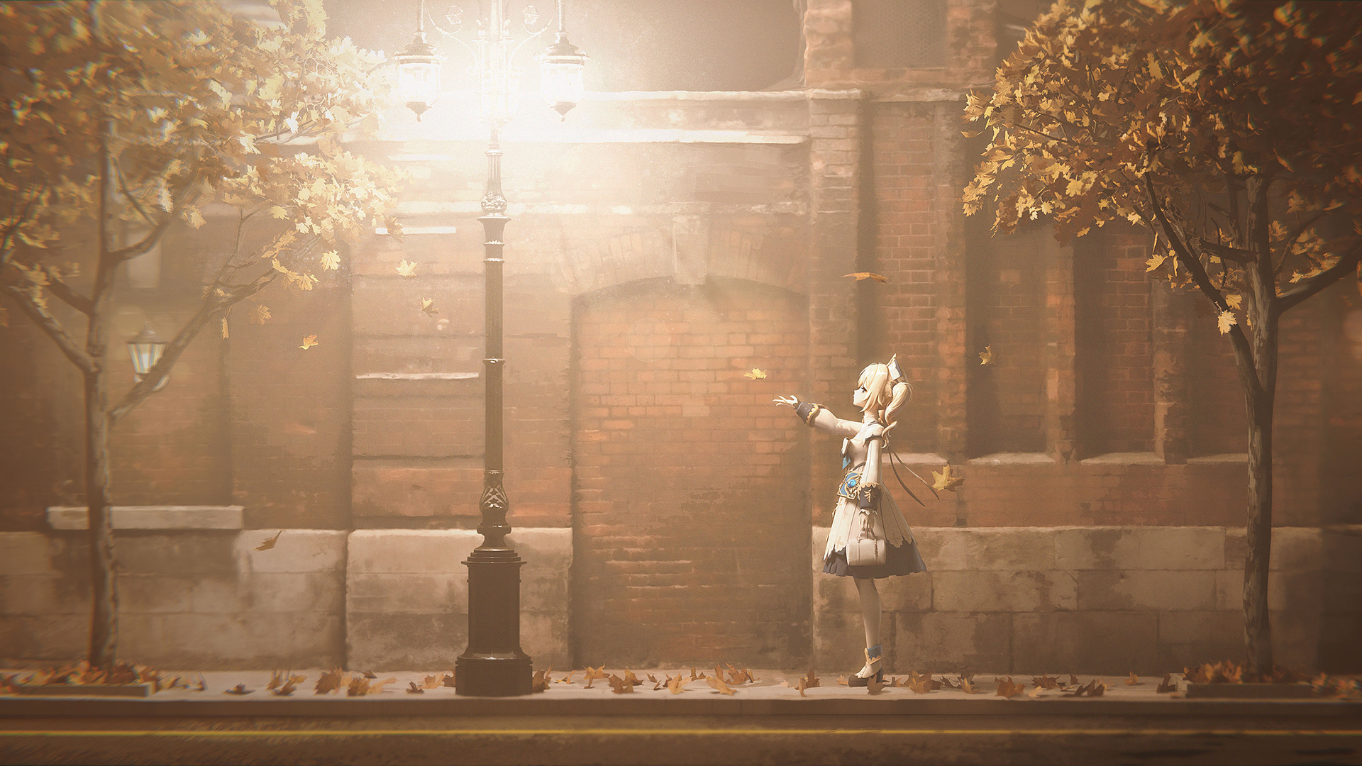 路灯 深秋 夜晚 落叶 街道