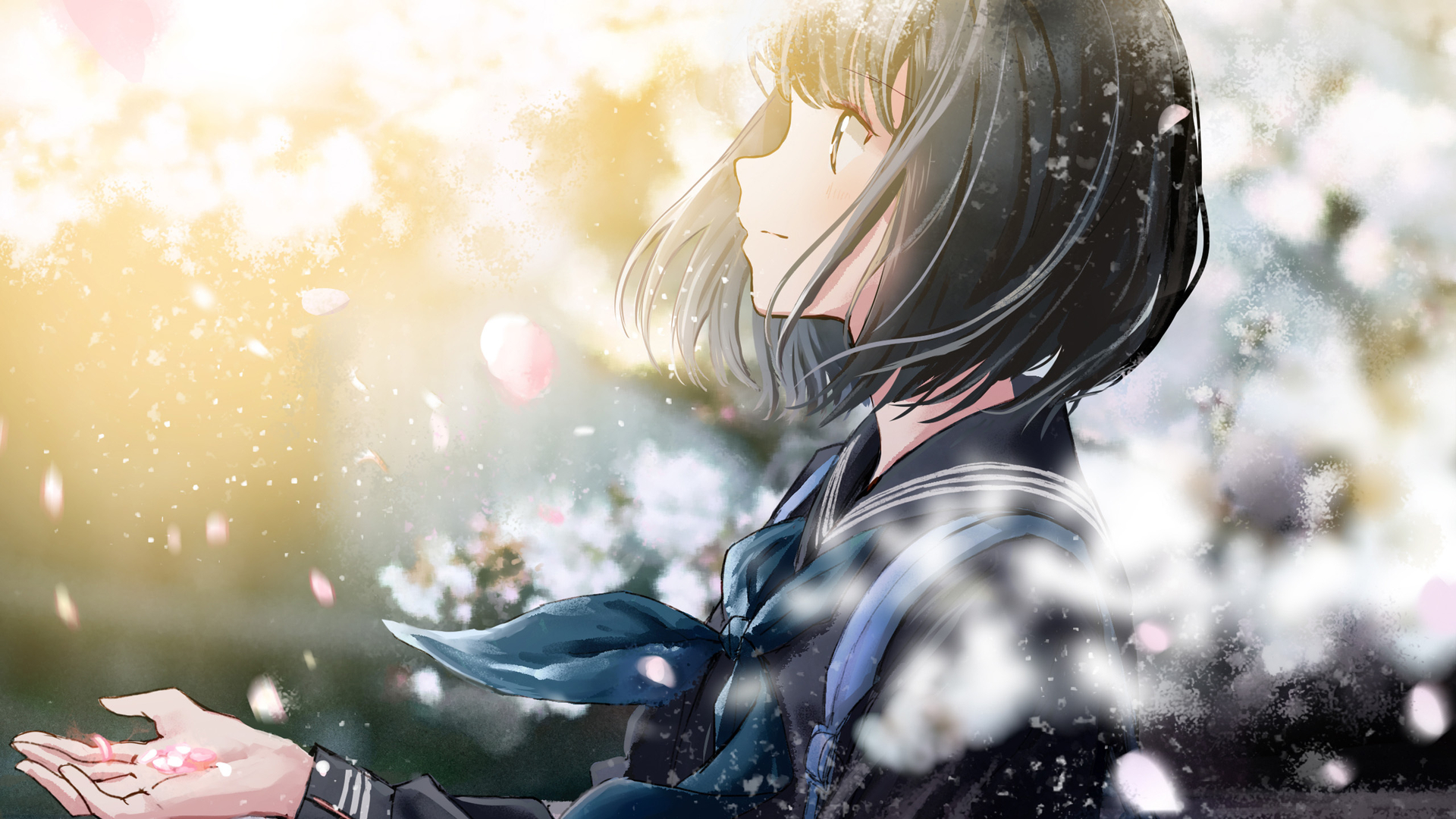 樱花 纷飞 短发 学妹 花瓣