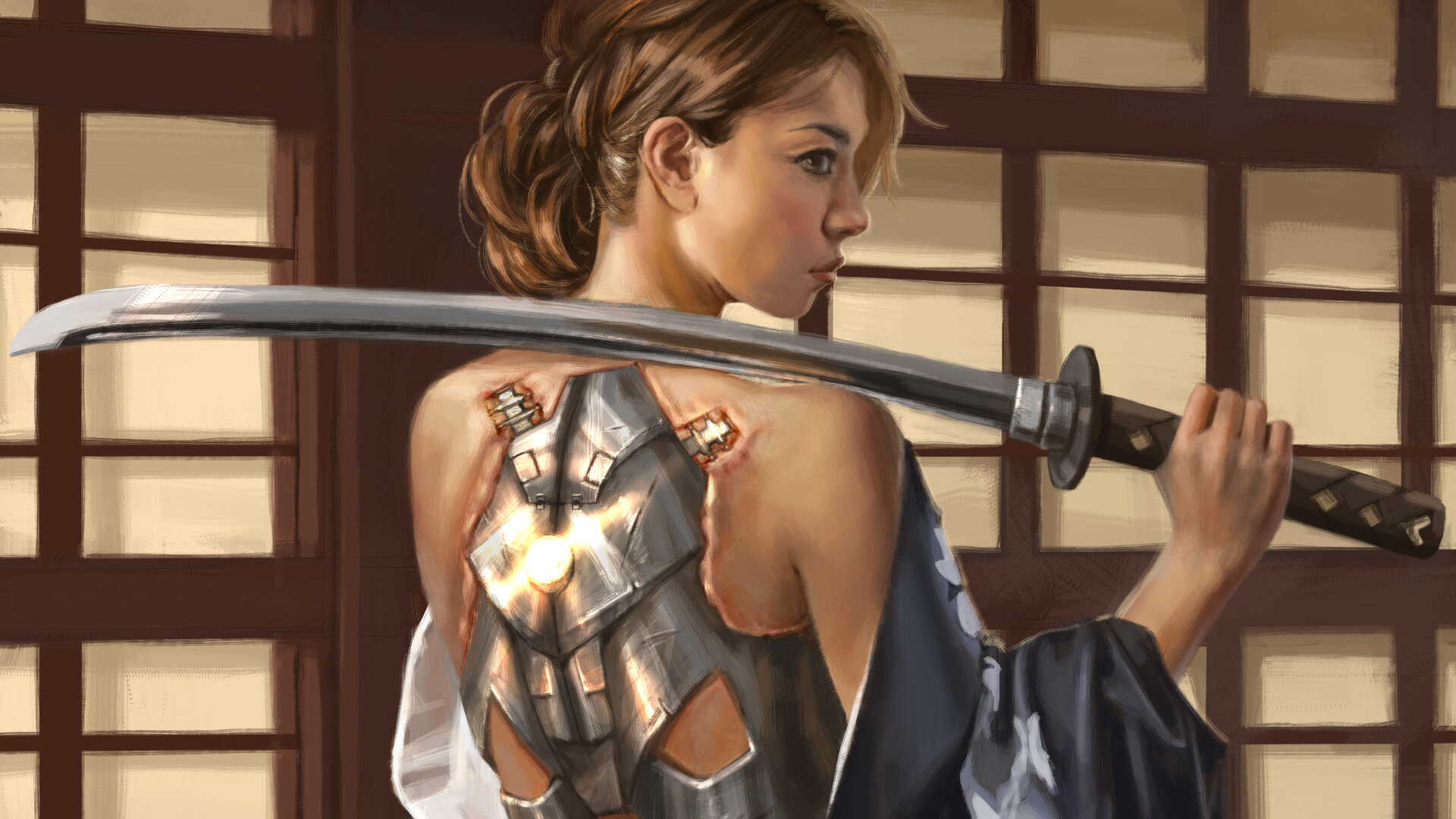 刀 金发 铠甲 金属 女武士