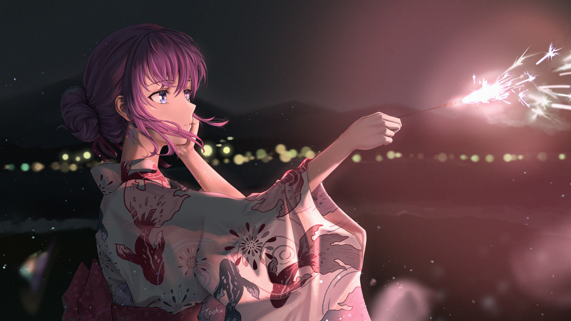 花火 浪漫 风吹头发