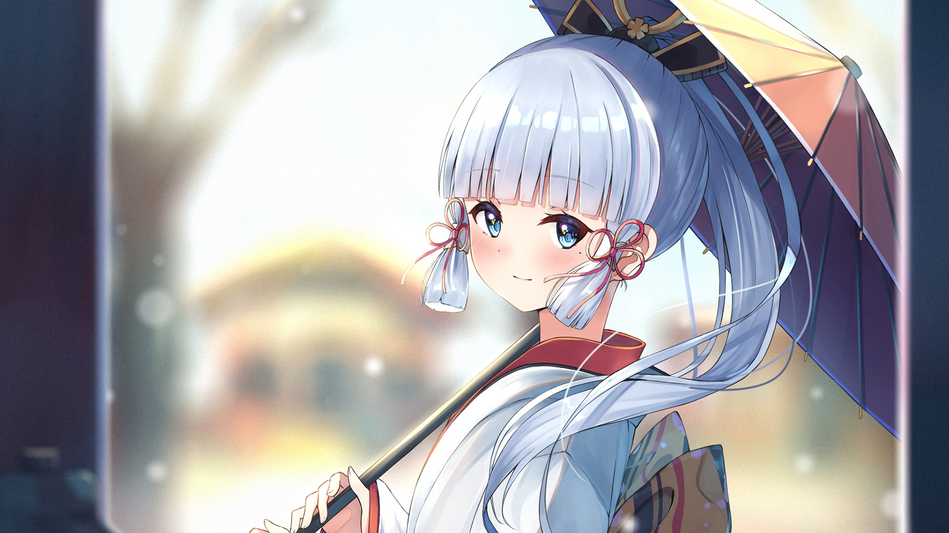 伞 下雪天 白发女孩
