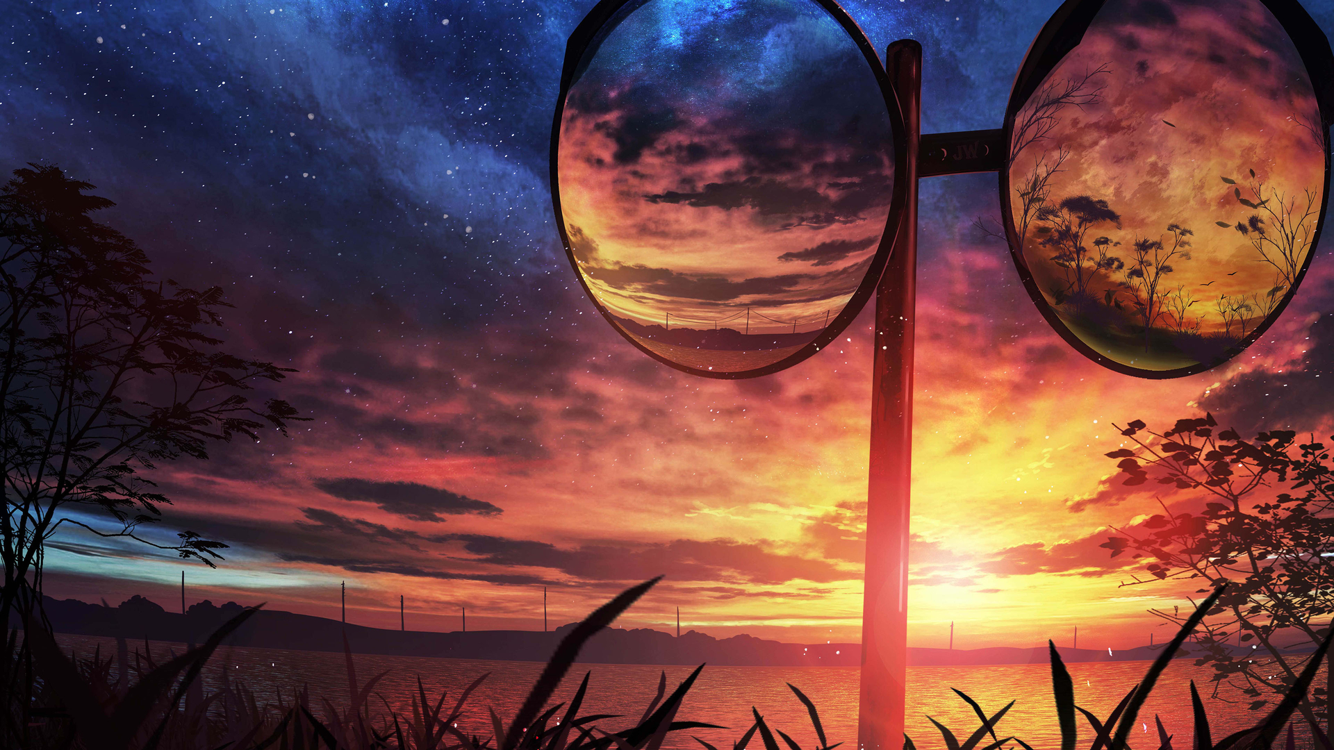 晚霞 落日 红霞 倒映