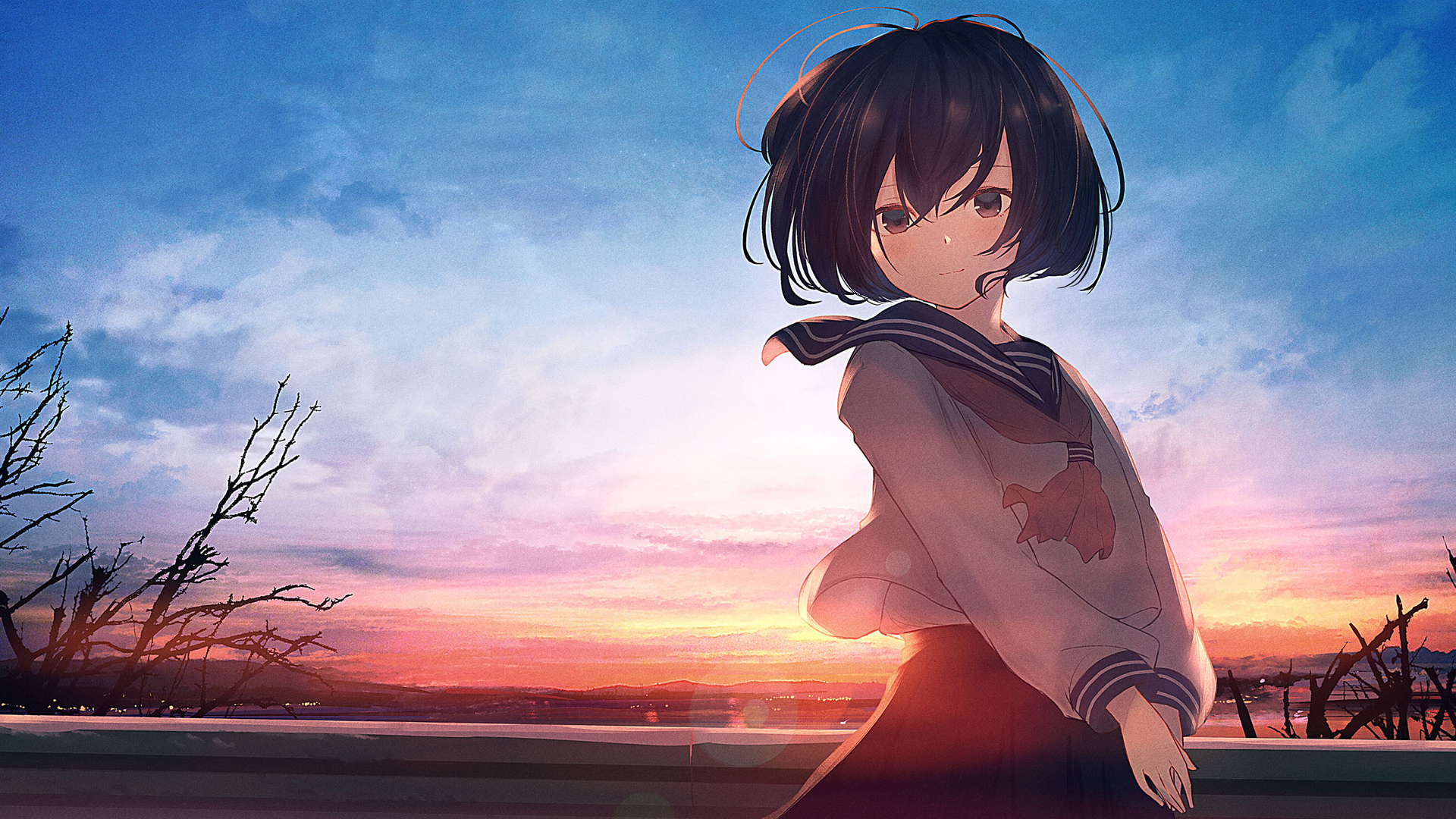 卡通人物 制服 学妹 晚霞