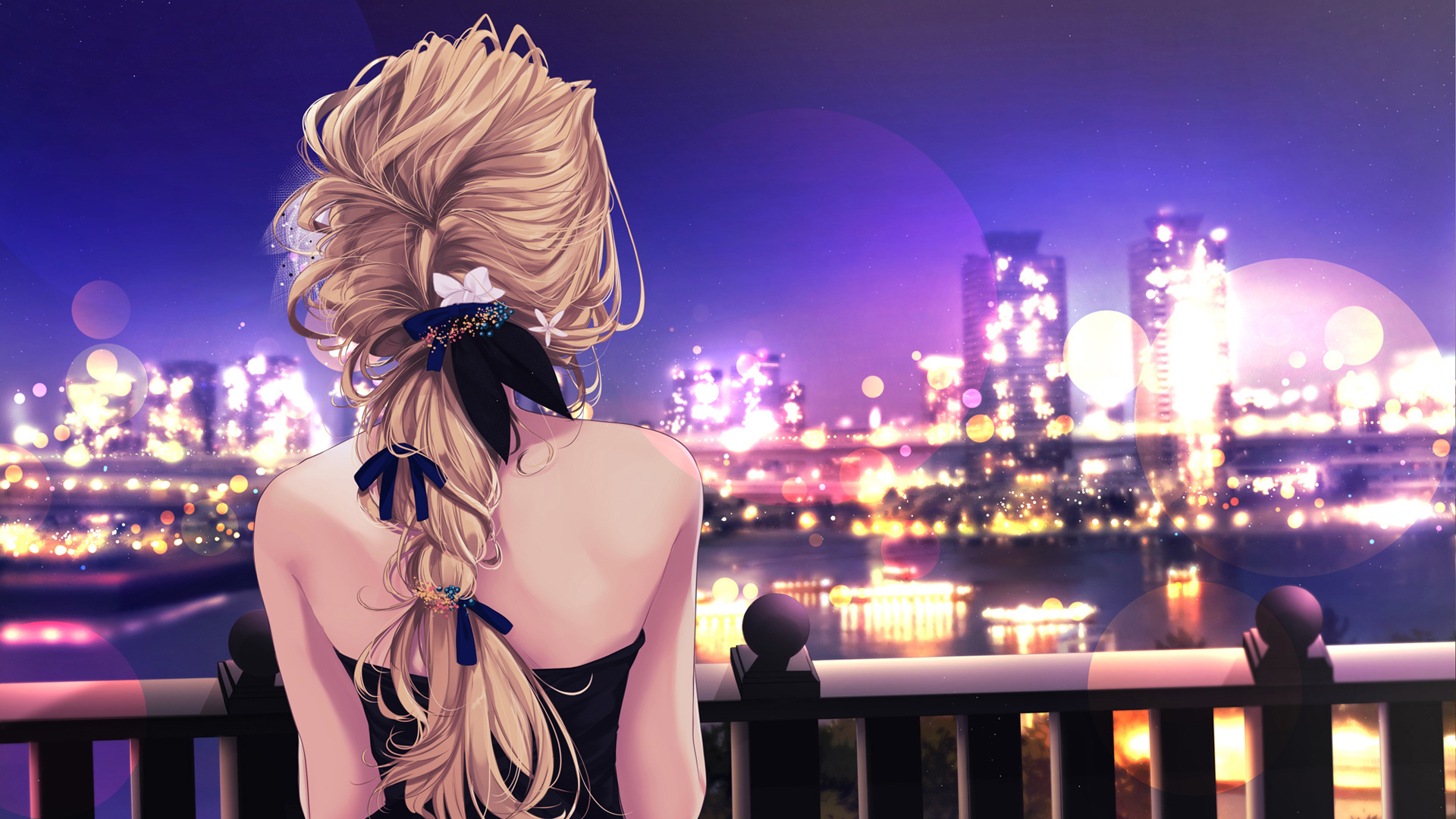 城市夜景 女孩 后背 动漫