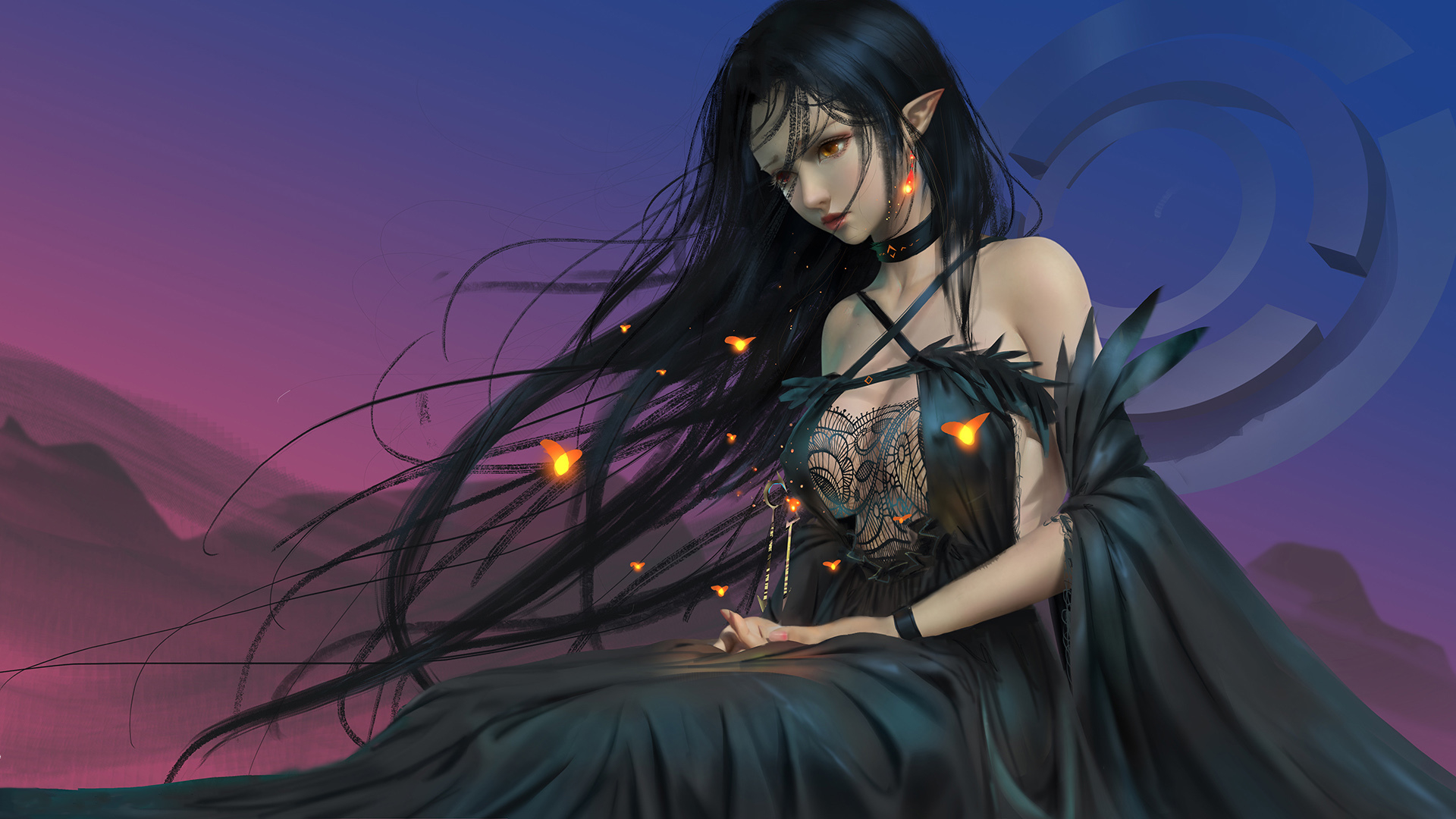 二次元 弓箭 雷电 月亮 魔法