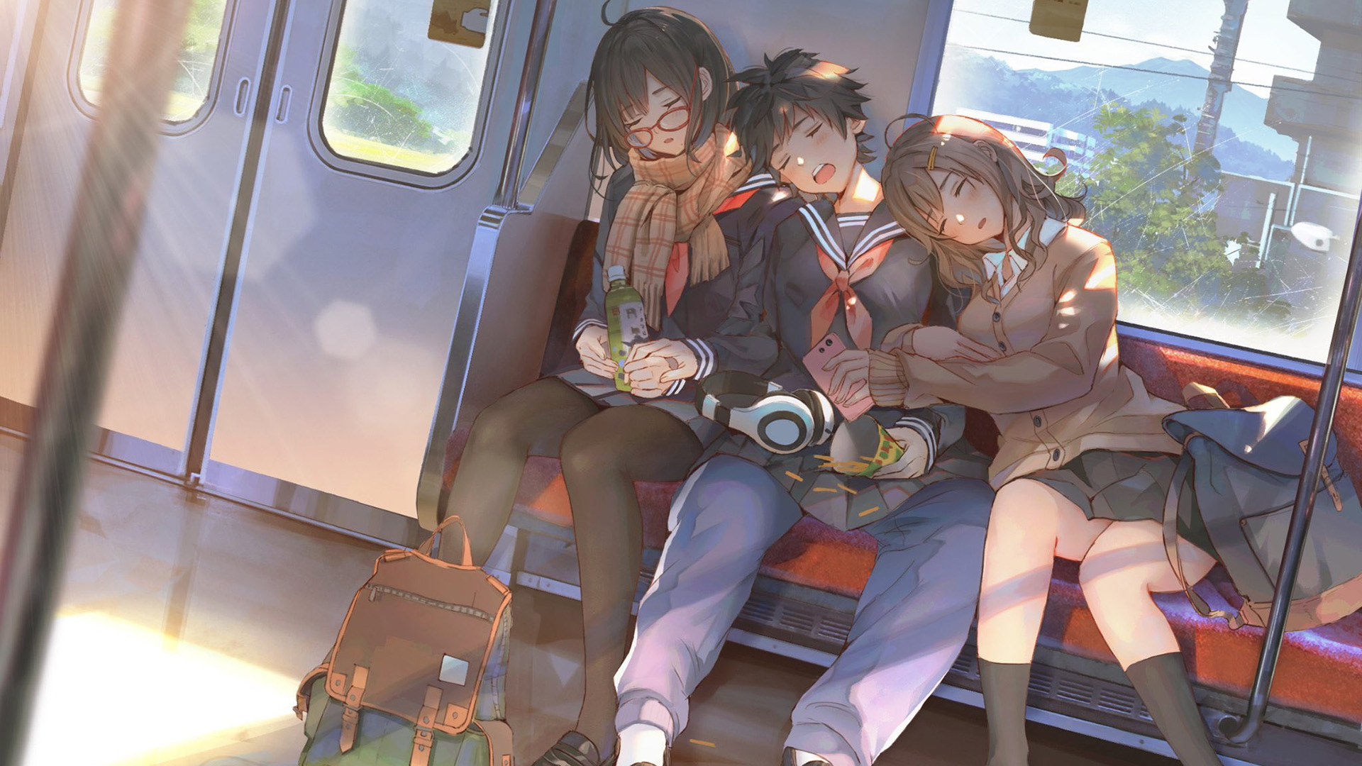 二次元 电车 放学 睡觉 阳光