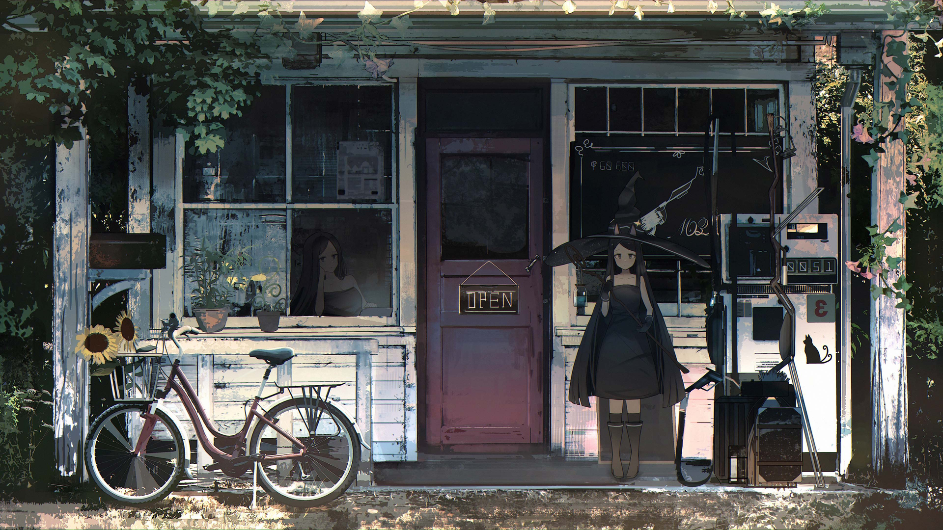 女巫 单车 向日葵 屋檐