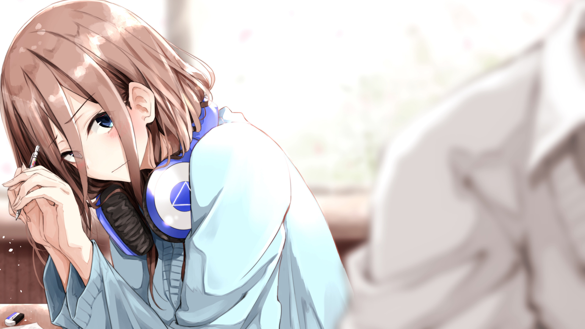 二次元 耳机 学校 教室 作业
