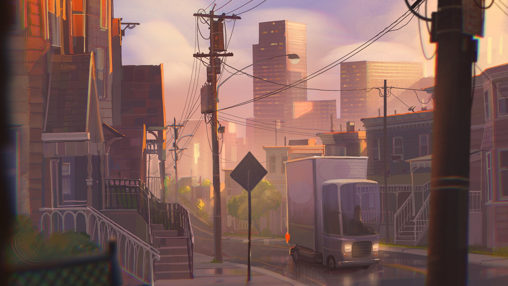 城市 或者 清晨 电线杆 街道