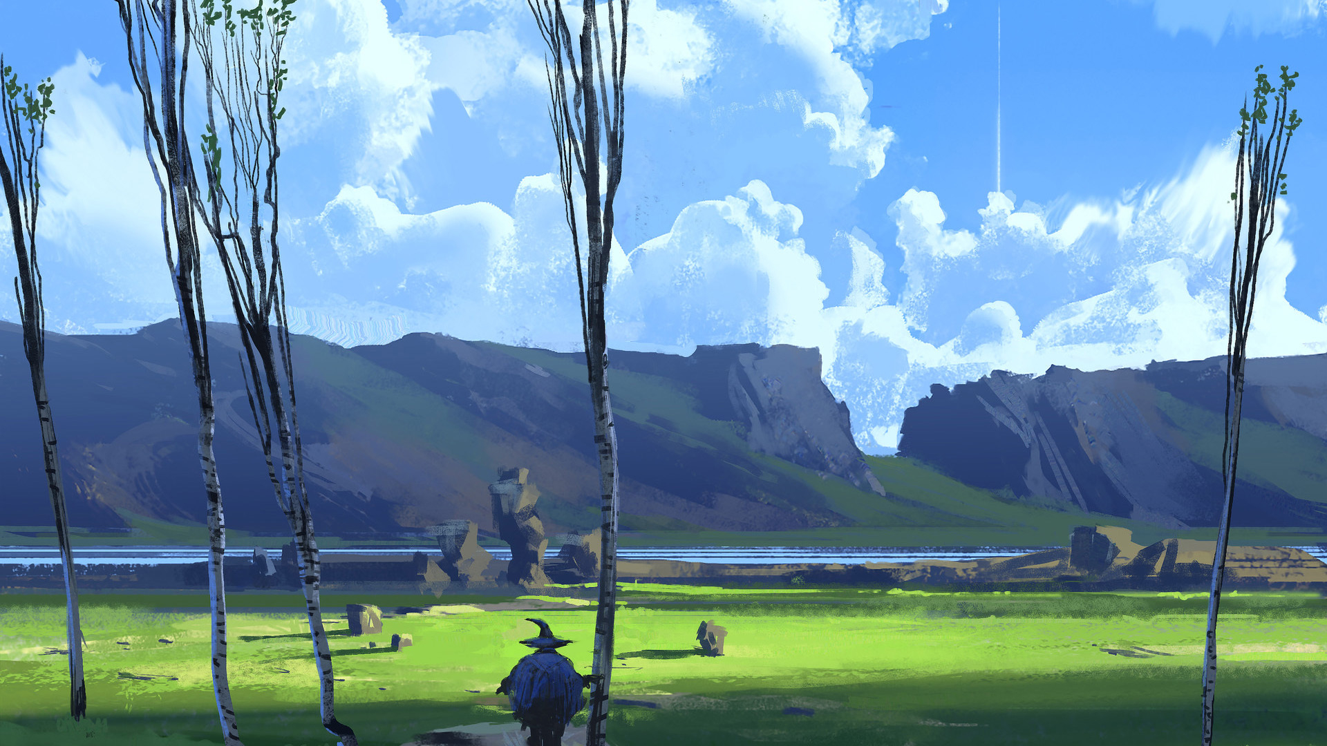 蓝天 白云 草原 原野 流星