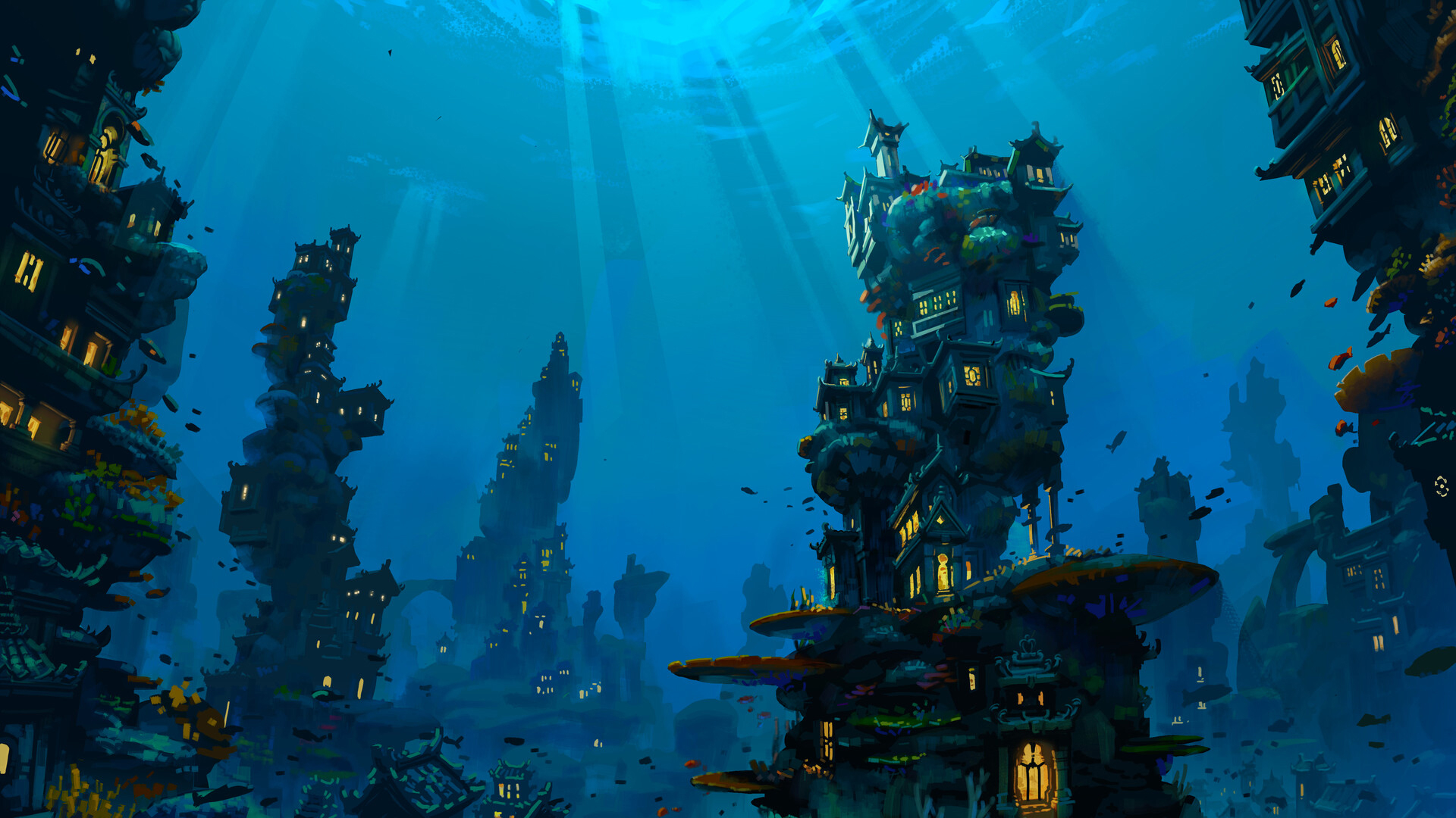 海底 城市 阳光 鱼类 童话