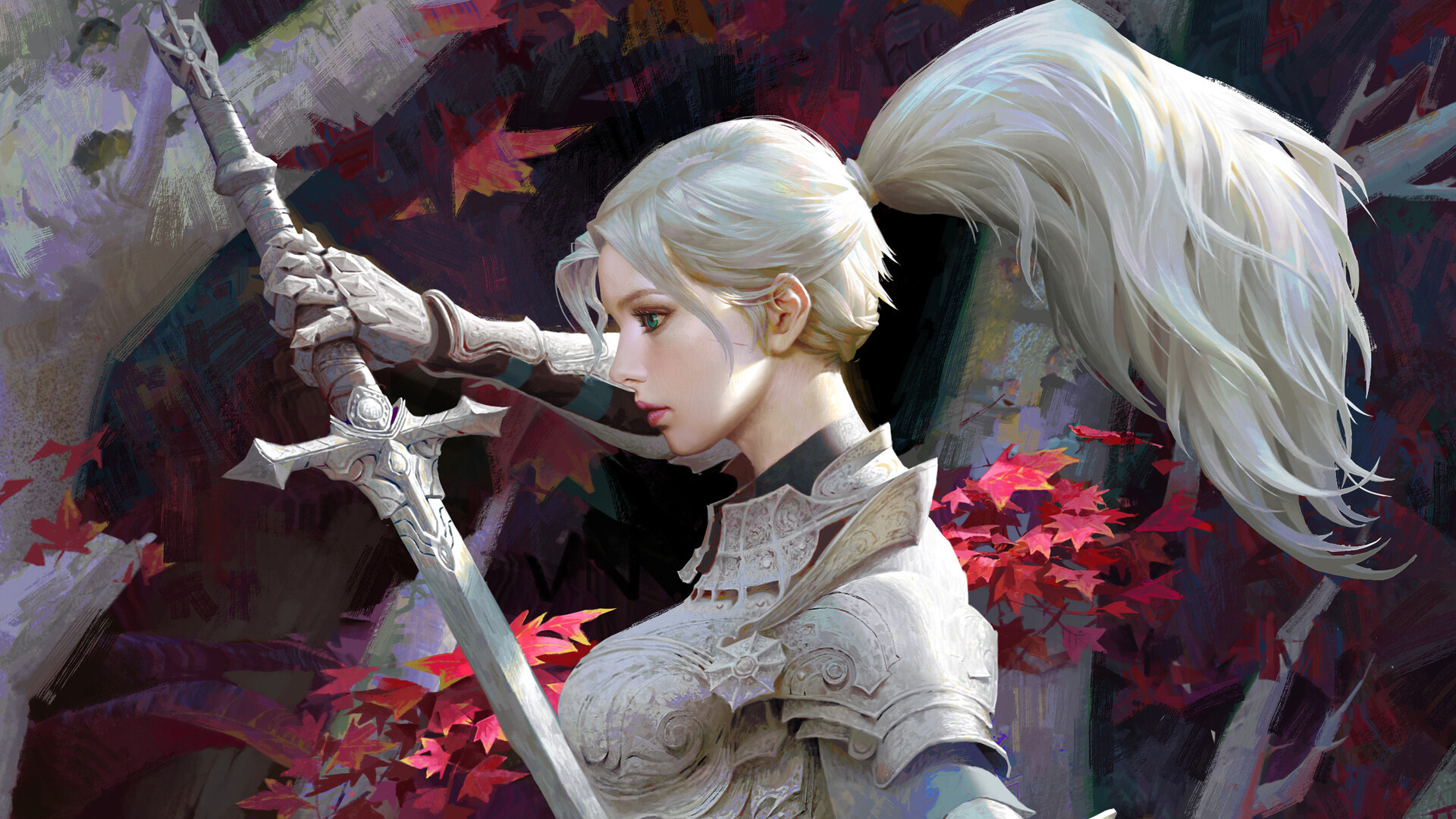 枫叶 剑 长发 女武士 盔甲
