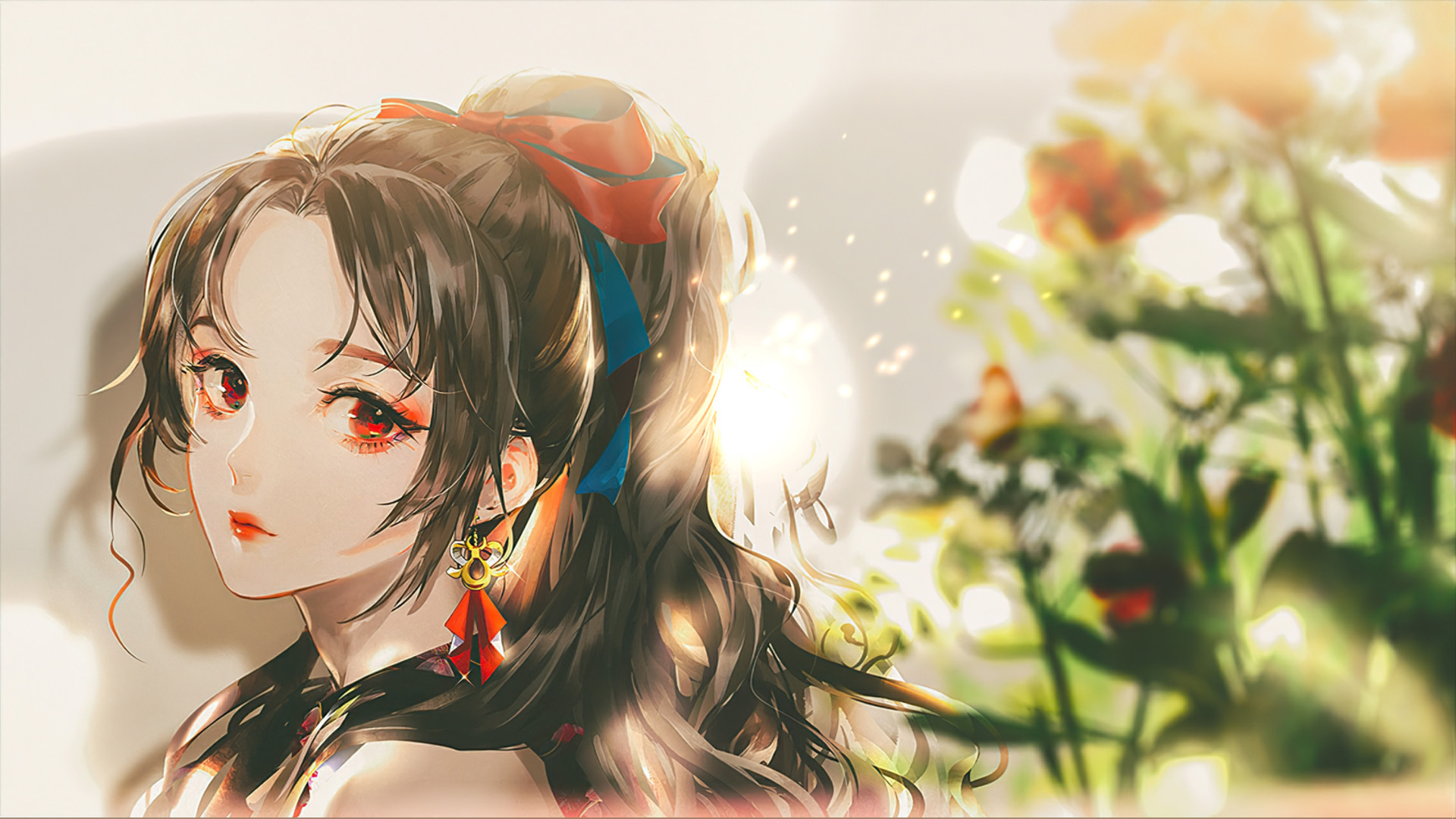 卡通人物 鲜花 女孩 长发 眼影 口红 耳环