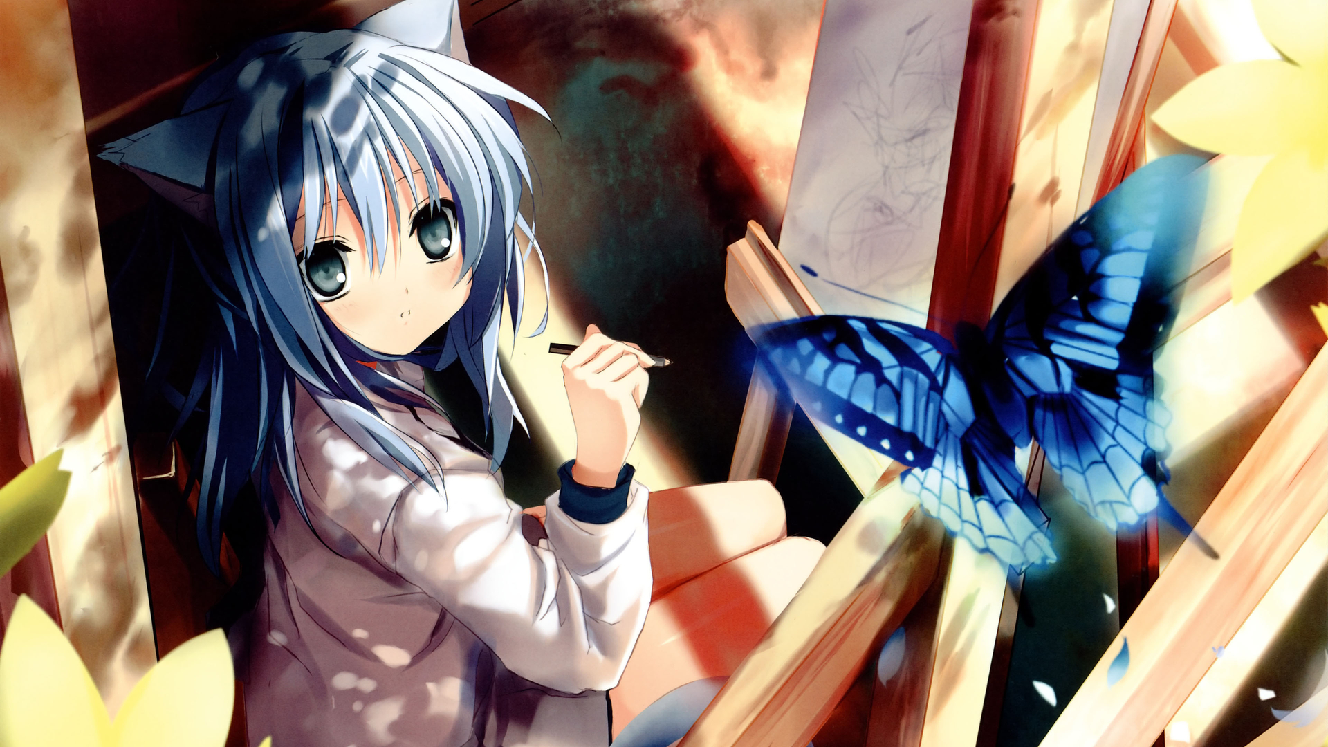 二次元 蝴蝶 猫耳 春天 阳光